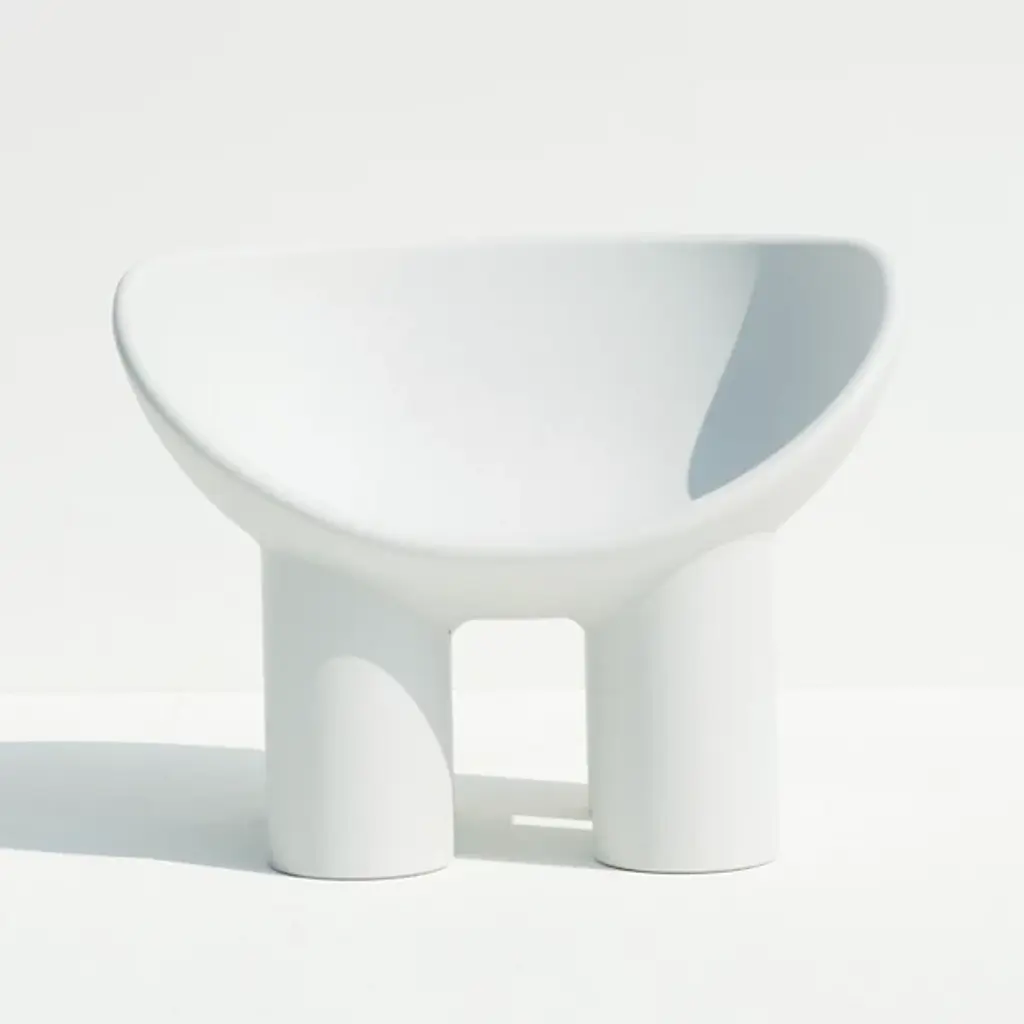 Enhance your home or office spaces with the iconic silhouette of the Roly Poly Armchair from Driade. A collaboration with designer Faye Toogood produced in Italy, it makes use of the curved, inviting forms found in her design background. Fashioned from smooth, tough polyethylene and ready for indoor or outdoor use, the seat sets a curved bowl seat atop four thick, cylindrical legs that contrast with its open shape to draw the eye and offer a companionable comfort to all who sit in it.