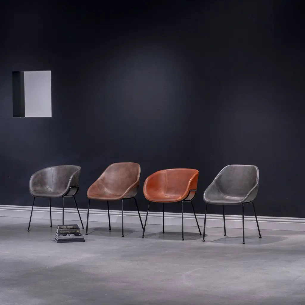 The Andie Collection cradles you in textured leatherette or fabric while matte black powder coated solid rod steel legs provide a sturdy support. Thicker stitching on the seat is stylish and durable, and the rounded feet are a delightful accent.