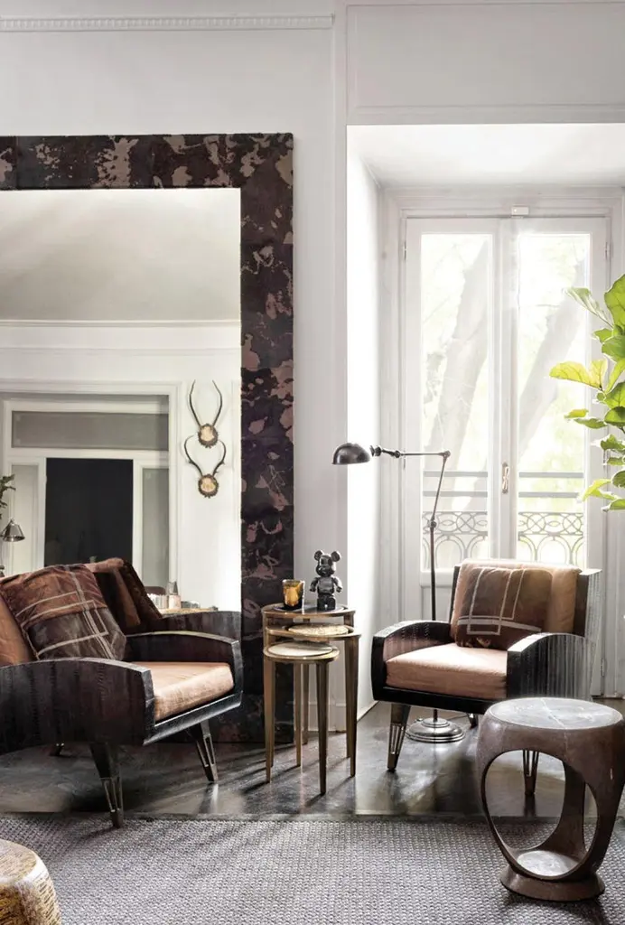 The Paris based label has distinguished themselves since their launch, with their iconic use of shagreen mixed with brass and other exotic materials. All furniture is handcrafted by skilled artisans, ultimately making each piece unique, designed in Paris and produced in the Philippines.The Saint Germain is a sophisticated armchair in a stylish midcentury shape designed for a contemporary home. Perfect for a conversation. This piece is inlaid in black pen shell creating a sleek and luxurious finish. The ends of the feet are inlaid bronze-patina brass. This piece was featured in the home of acclaimed menswear designer Neil Barrett, see image at end of slide.The dimensions of this piece are 96 x 60 x 73 cm / 24" x 37.5" x 29"All R&Y Augousti pieces are handmade by artisans, ultimately making each piece unique. 1 piece currently available for immediate shipment, multiples available on order with a 5-6 week lead time, custom color or sizing available on request.Wipe clean with soft dry cloth.Acclaimed design duo Ria & Yiouri Augousti have established themselves since the 1990s as pioneers of modern-vintage style through their luxurious Art Deco inspired collections.The Paris based label has distinguished themselves since their launch, with their iconic use of shagreen mixed with brass and other exotic materials. All furniture is handcrafted by skilled artisans, ultimately making each piece unique. All shagreen-covered items should be kept out of direct sunlight, color variants may occur on the stingray and other exotic finishes, but this showcases the Parisian label's commitment to creating authentic luxurious products using natural components.
