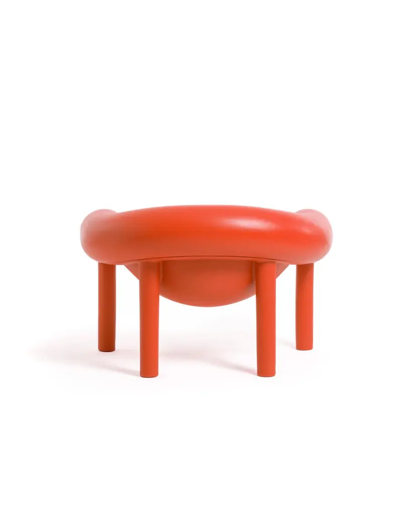 Sam Son is an easy armchair with a hint of a cartoon character. Supported on four stilt legs, the armchair features a softly suspended seat shell between a giant, horseshoe-shaped element, the chair’s characteristic armrest and backrest.Made from two different rotational mouldings, the armchair combines a rigid plastic for its base and a more elastic polymer for the upper part.The exaggerated size of the armrest and backrest provides comfort and support and creates a protective space for sitting. Sam Son comes in five different colours and is suitable for both indoors and outdoors.