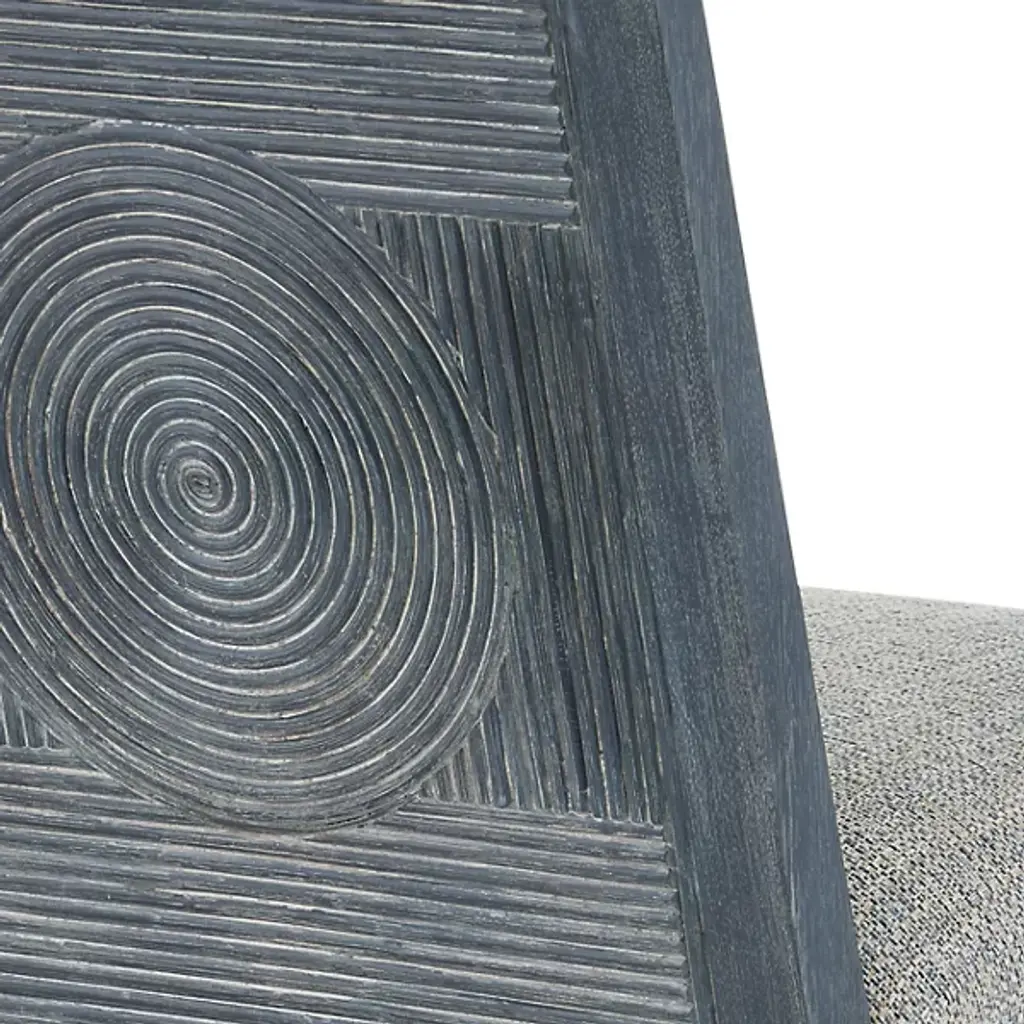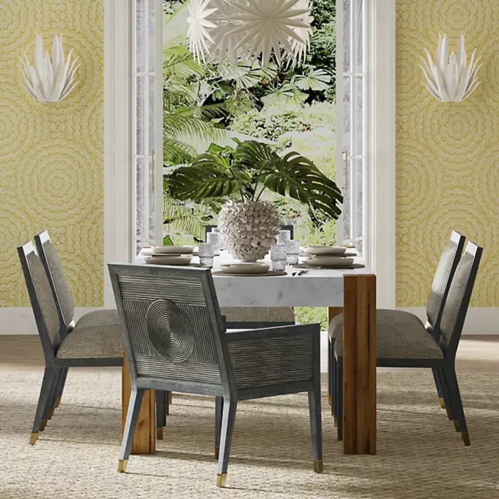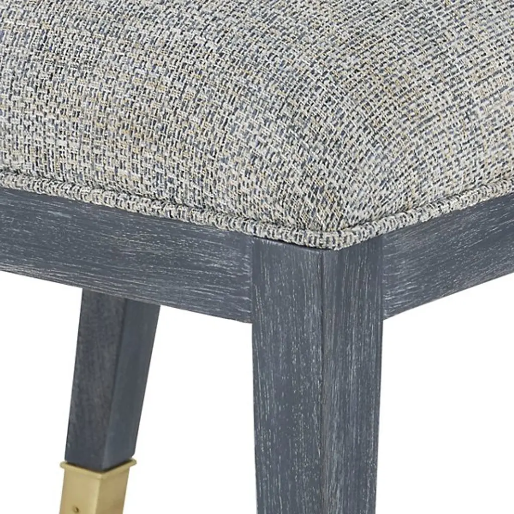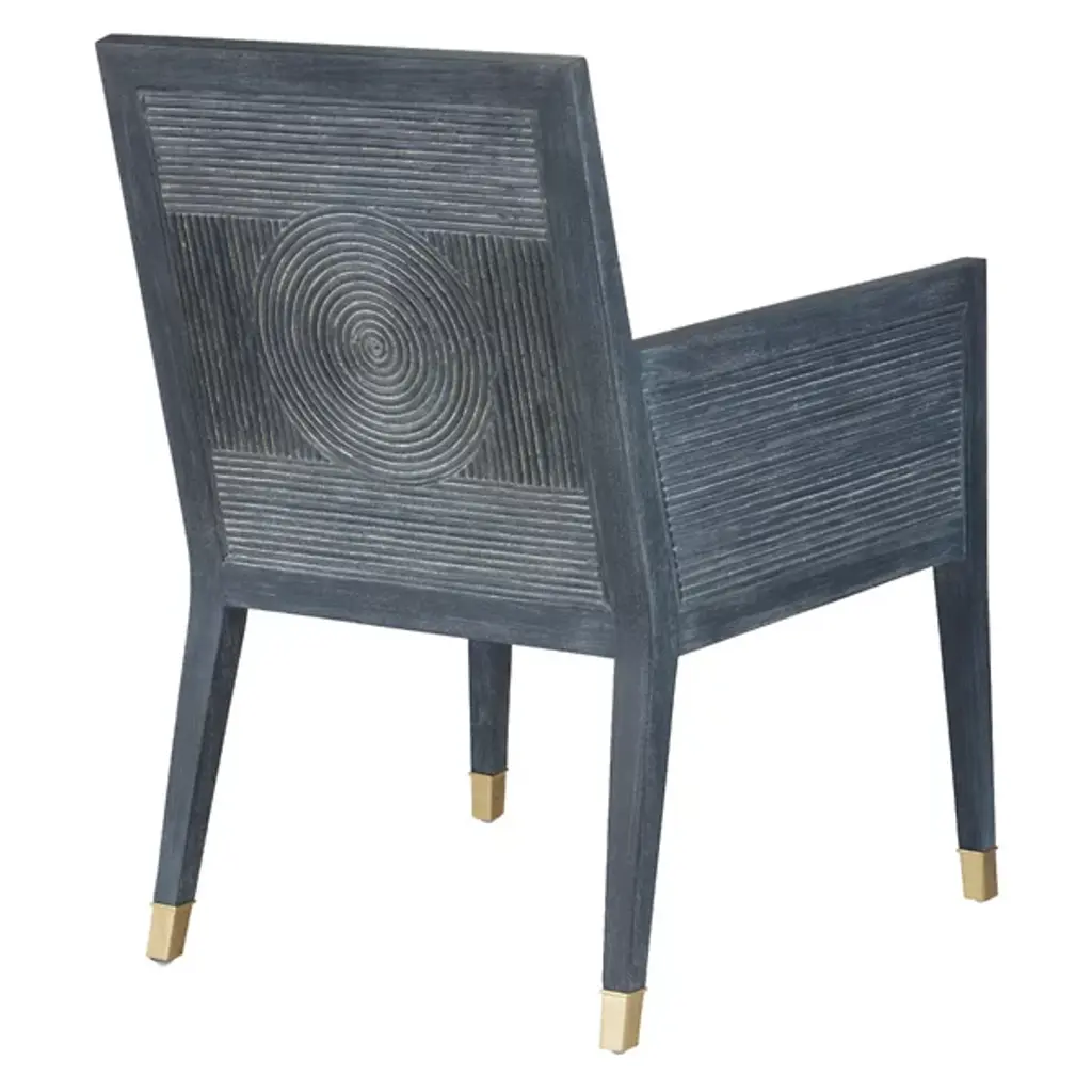 The Santos Armchair from Currey & Company brings a hint of tropical sophistication to any room, from a cozy reading nook to a stylish living area. Its solid mahogany frame provides a sturdy foundation, while hand-applied split rattan panels on the back and arms add texture and visual interest. Upholstered in a performance fabric, the chair balances comfort with durability. The seat and inside back feature tight upholstery over no-sag webbing, ensuring long-lasting support. Brass ferrules on the legs add elegance, elevating the overall design.
