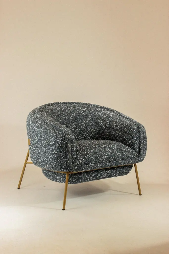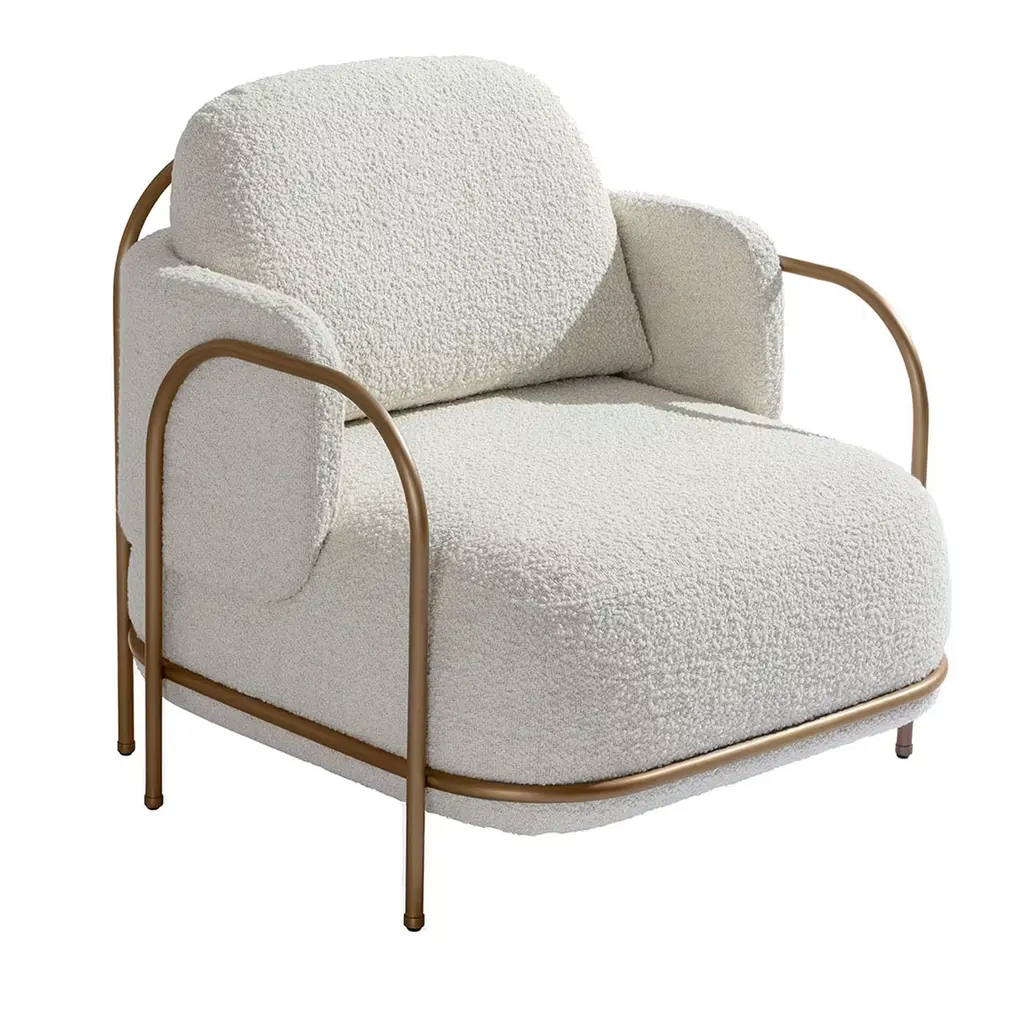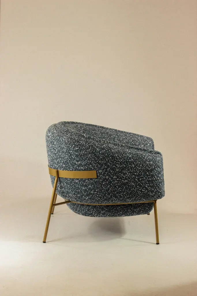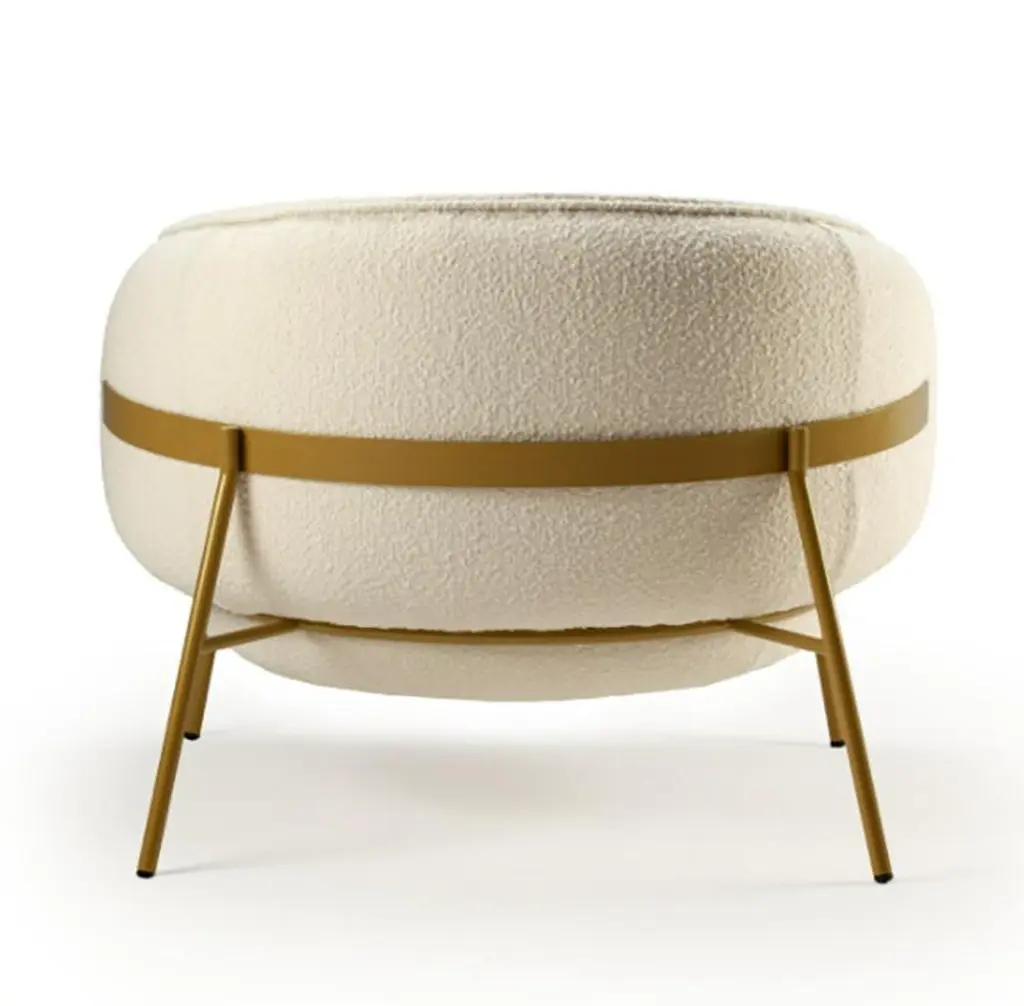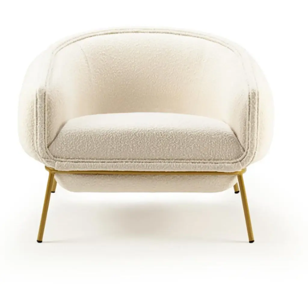 Scandinavian Modern Golden Metal Base, Beige Bouclé Round Shaped Blop Armchair