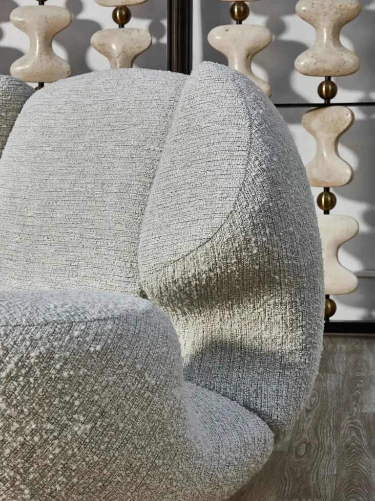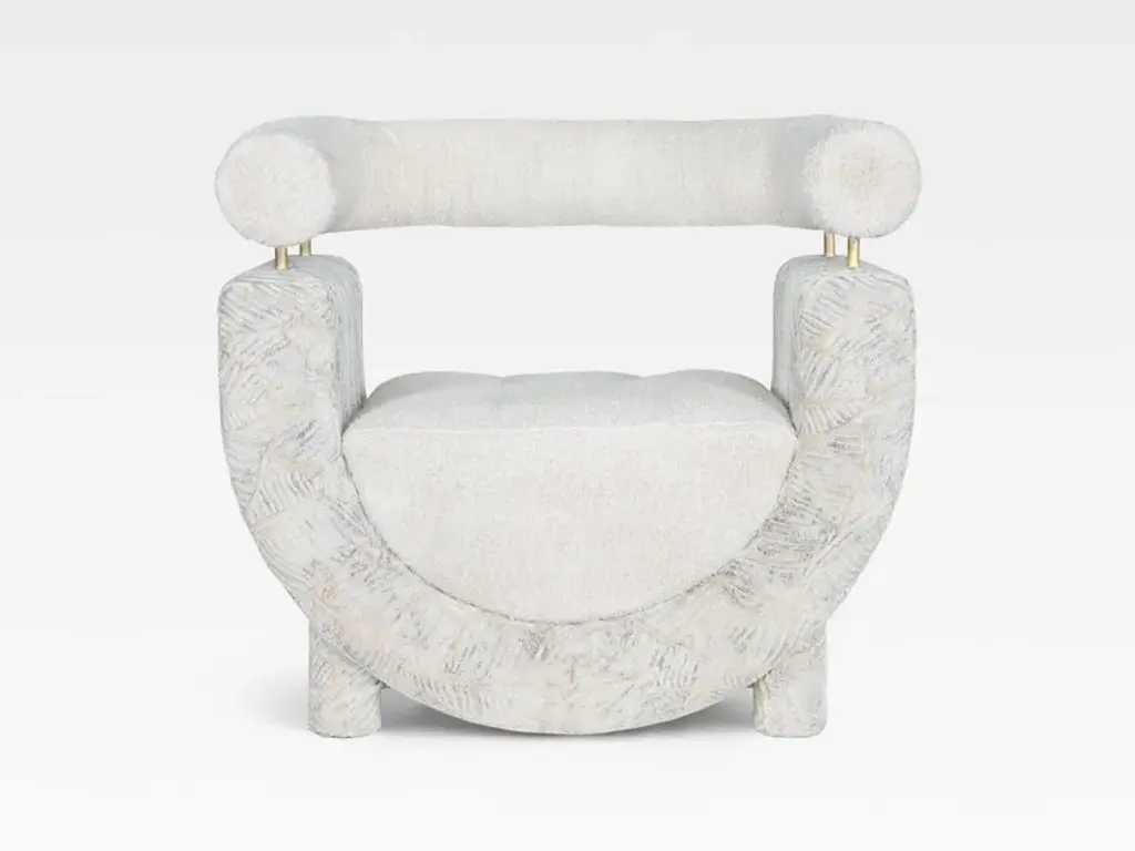 "Scarface" armchair with brass base, upholstered with a bouclette fabric.Creation by Studio Glustin.Pair available right now.