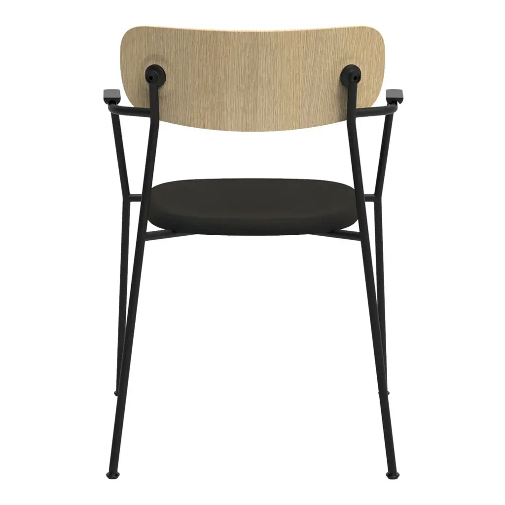 Scope is created with environmental considerations and designed by Hans Thyge & Co. Its wooden finishes, let you enjoy nature indoors and bring a warm and cozy feeling into your interior design. The name Scope refers to the elegant detail on the backrest, reminiscent of a doctor's stethoscope. With the stethoscope, you can change the expression of the chair and create your own unique design. This fun and interesting detail doesn't only have a decorative purpose, it also connects the frame and the backrest and holds them in place. Scope seems very simple with its clear lines, but taking a closer look, you discover harmonious proportions, a beautifully curved detail on the edge of the seat and a replaceable stethoscope supporting the sleek and elegant backrest. The integrated felt pads underneath the seat improve the acoustics and create a more pleasant environment. The felt pads also shield and protect the upholstered seat when the chair is stacked.