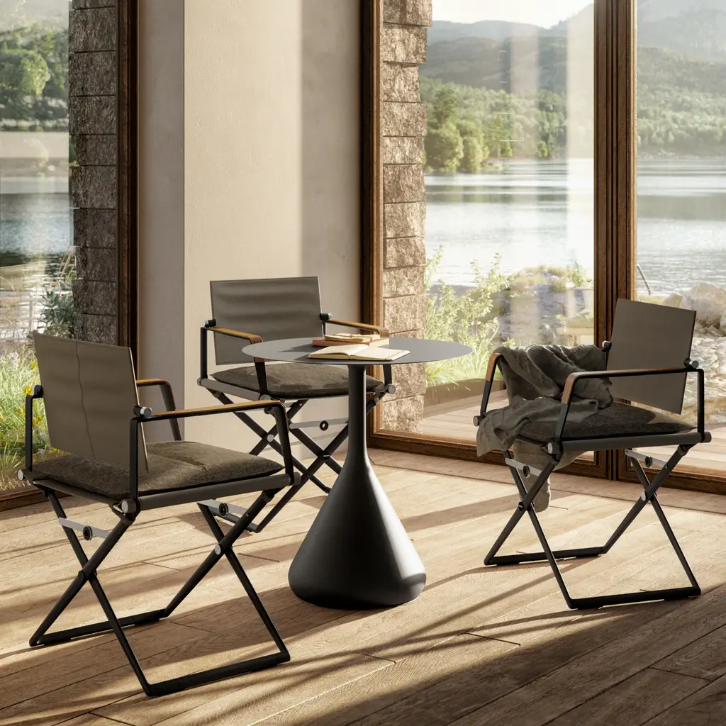 A sleek and stylish seating solution designed to resemble the luxury and precision of racing yachts, the SEAX Armchair from Dedon is a chic addition to your favorite outdoor areas. Crafted from weather-resistant aluminum, this seat features steam-bent teak armrests and a water-resistant yachting textile seat and back. Precision-engineered to lock into place and close with a push-button gliding motion, this lightweight chair is ideal for any space in need of a comfortable seat to relax and enjoy time spent with friends and family. Highlights