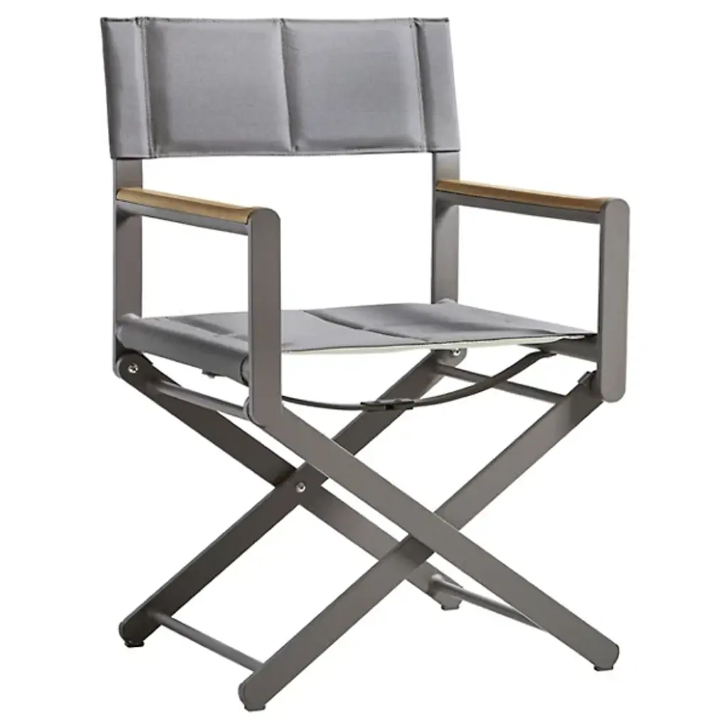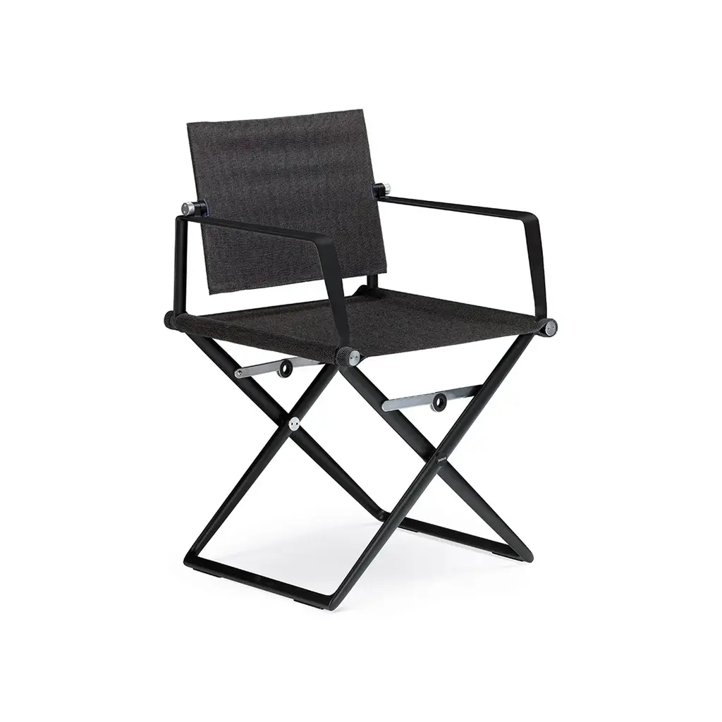A sleek and stylish seating solution designed to resemble the luxury and precision of racing yachts, the SEAX Armchair from Dedon is a chic addition to your favorite outdoor areas. Crafted from weather-resistant aluminum, this seat features steam-bent teak armrests and a water-resistant yachting textile seat and back. Precision-engineered to lock into place and close with a push-button gliding motion, this lightweight chair is ideal for any space in need of a comfortable seat to relax and enjoy time spent with friends and family. Highlights