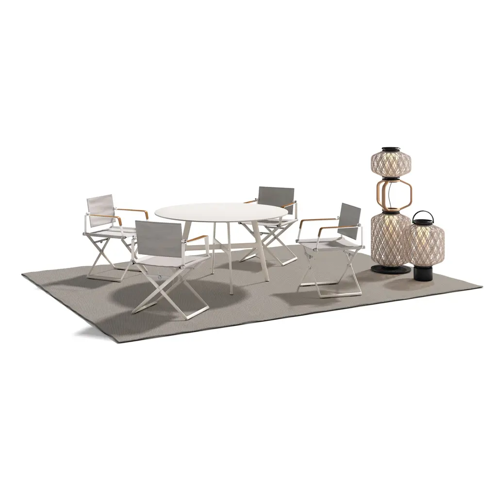 A sleek and stylish seating solution designed to resemble the luxury and precision of racing yachts, the SEAX Armchair from Dedon is a chic addition to your favorite outdoor areas. Crafted from weather-resistant aluminum, this seat features steam-bent teak armrests and a water-resistant yachting textile seat and back. Precision-engineered to lock into place and close with a push-button gliding motion, this lightweight chair is ideal for any space in need of a comfortable seat to relax and enjoy time spent with friends and family. Highlights