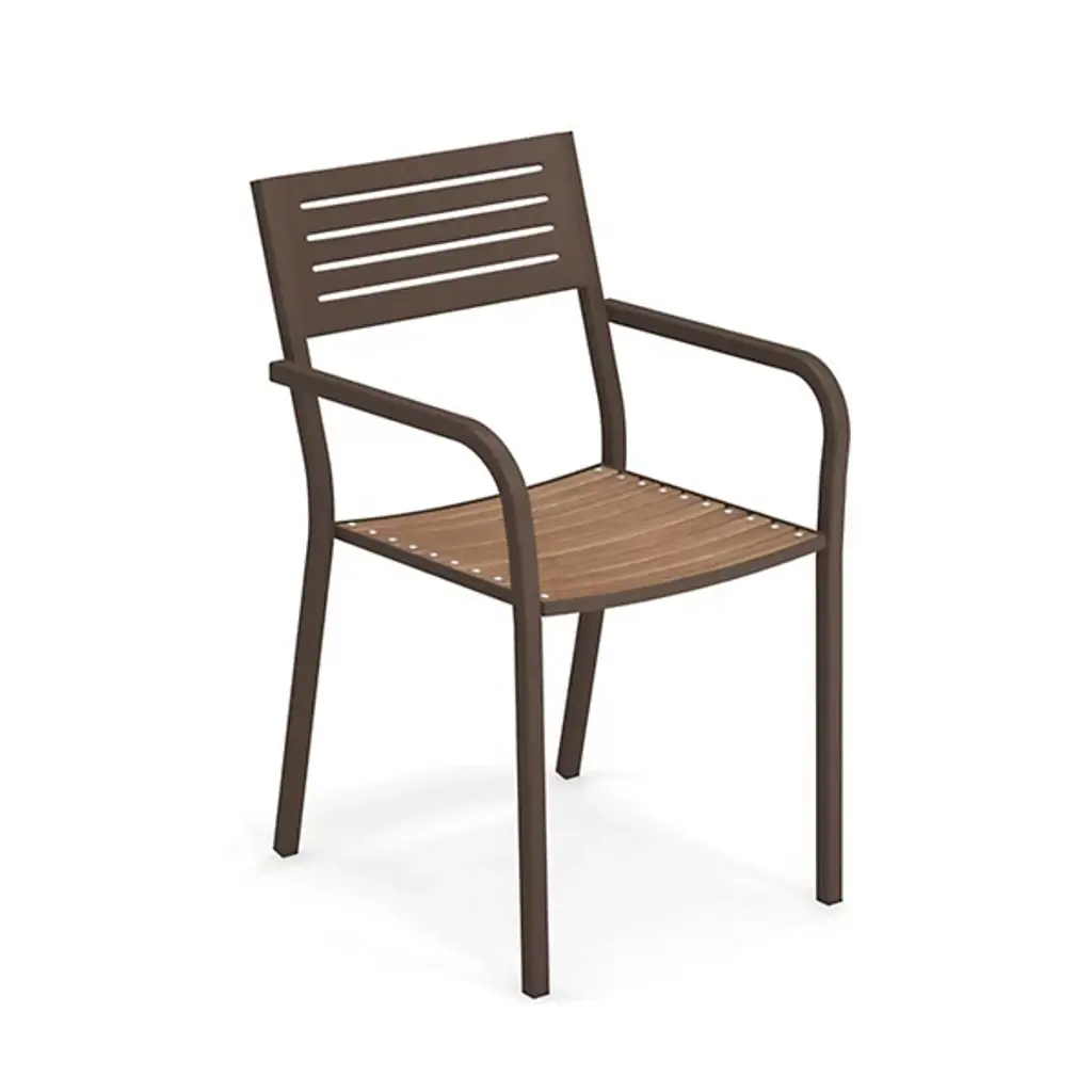 The Segno Outdoor Stacking Armchair Set of 4 from emu moves the eyes with clean lines that serve as simply relaxing elements. Designer Aldo Ciabatti finds a balance of functionality and harmony in his designs. Ciabatti draws out a tubular steel framework designed to stack when not in use. This framework bendy gently to create seamless armrests and a leaning backrest. Ciabatti uses the horizontal line prominently in the fine cutouts of the back and seat. These cutouts maintain airflow for comfort on warm days and wick water after rainfall. Durable materials make the piece easy to maintain.