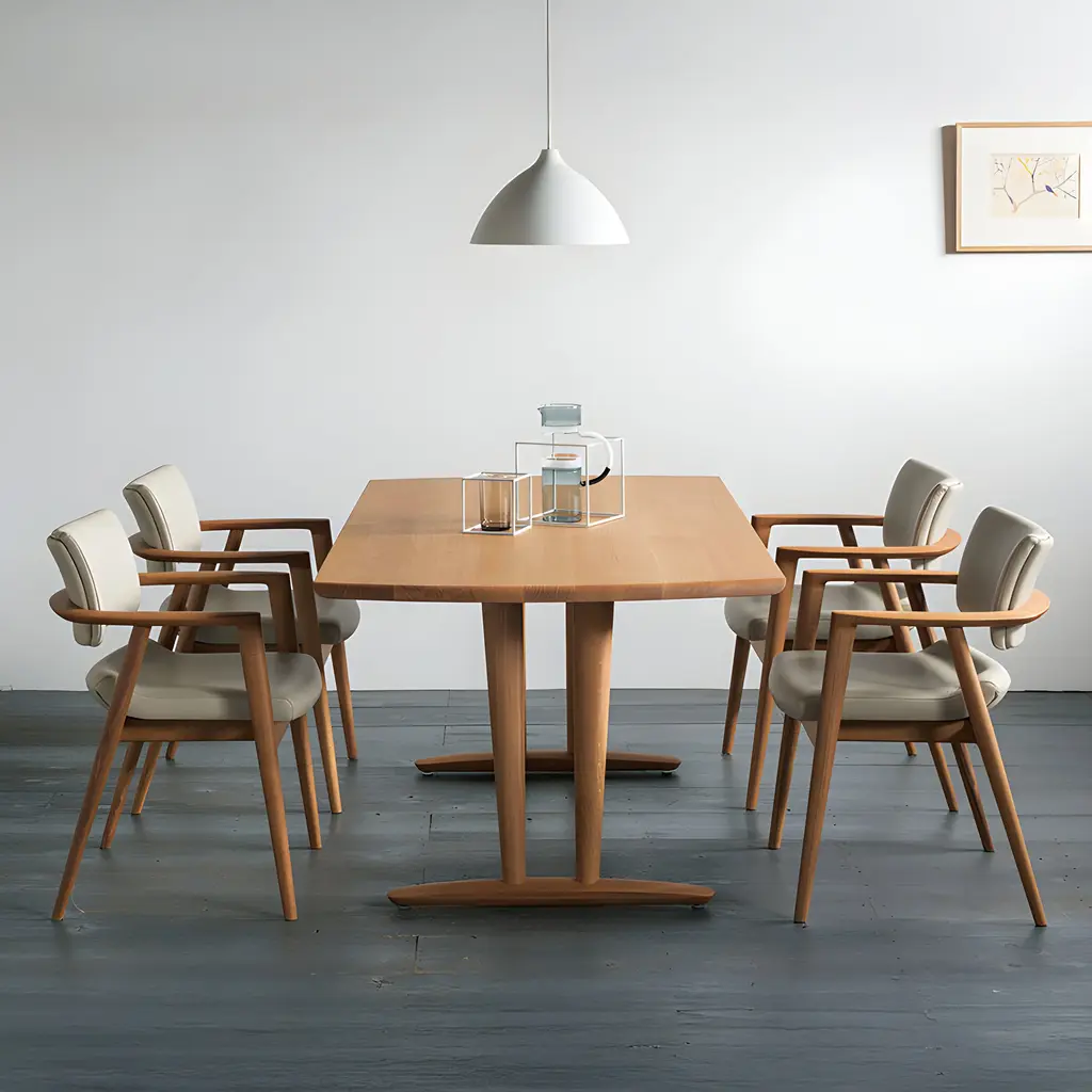 The Seoto-EX Armchair by Hida Sangyo features a sculpted backrest that traces the natural curve of the spine, providing long-lasting comfort. Crafted in Japan, the armchair is constructed from solid white oak, beech, or walnut and finished with a polyurethane resin that protects while emphasizing the wood's natural texture.