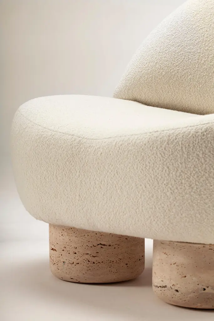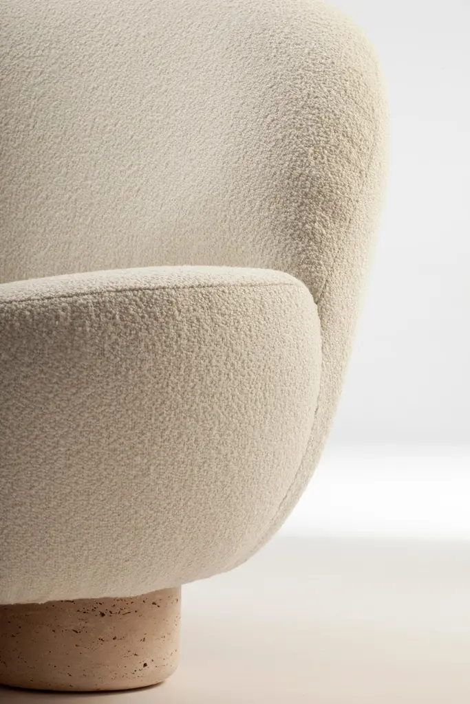 Set of 2 Hygge armchair by CollectorDimensions: W 95 x D 108 x H 74 cmMaterials: Fabric, TravertinoOther materials available. The Collector brand aims to be part of the daily life by fusing furniture to our home routine and lifestyle, that’s why we’ve designed our pieces with the intention to embrace diverse styles and to blend in inside anycontemporary setting.Described by our motto: “built to fit a good IDEA.”, this wide range of product typologies were designed to work in diverse layers of importance. It can work as a center piece of the house, with strong personality or just complementing the background by gently blending in. The result is a clean-lined furnishing collection that can easily be customized to work specifically and according to each unique need, reflecting essentially our traditional methods of furniture manufacturing with accurate Industrial Production methods.We strive to achieve the best quality possible by selecting the best materials and by the constant development of our production processes and manufacturing partnerships.