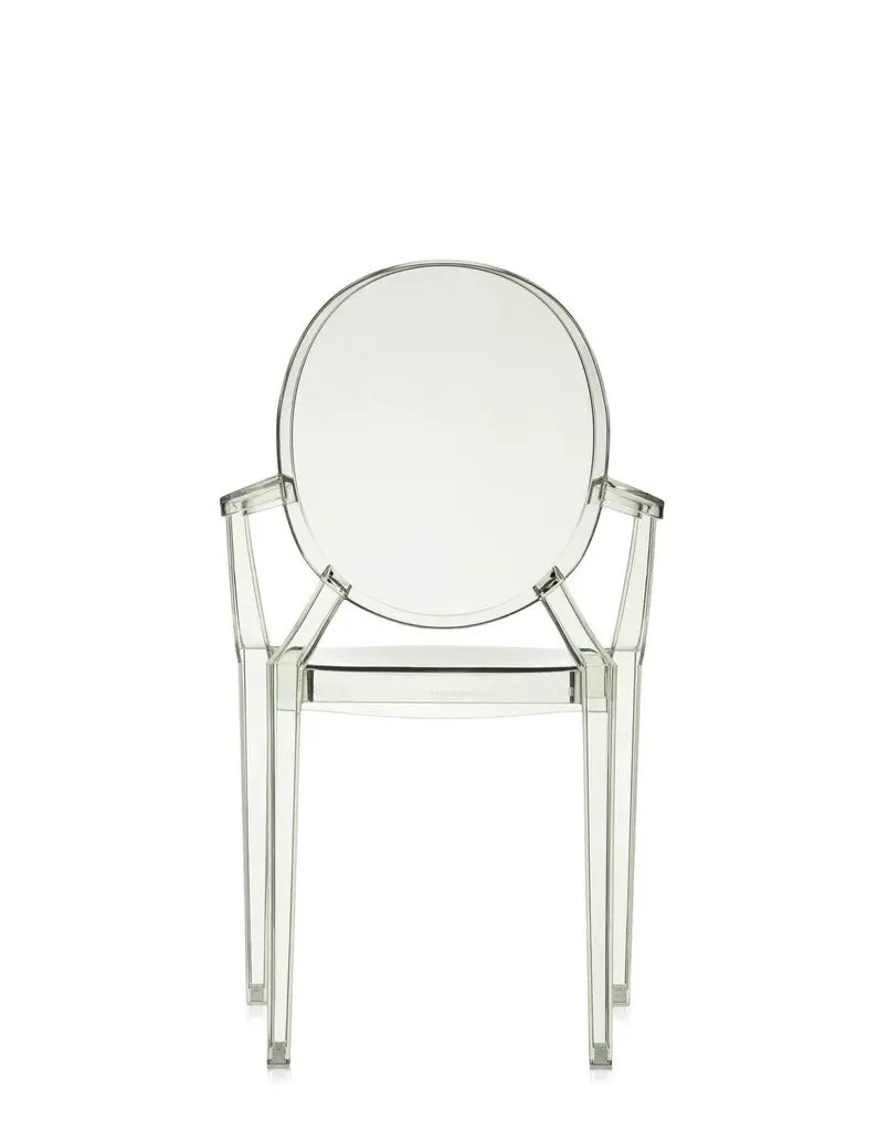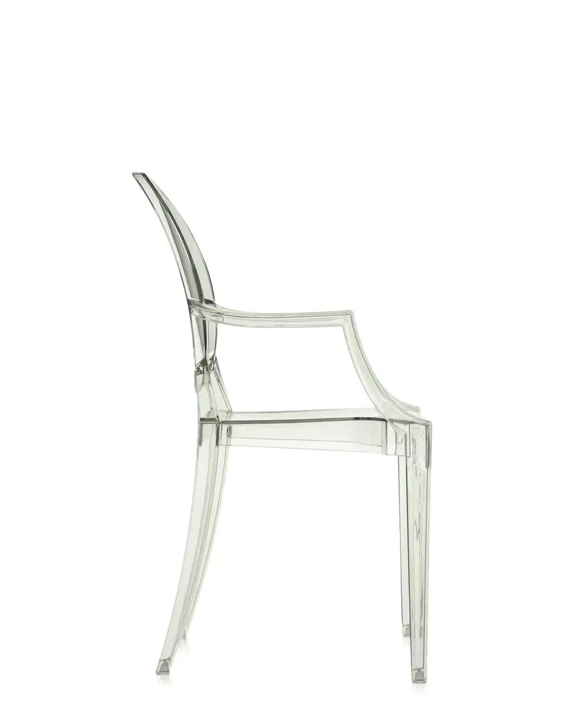 A comfortable armchair in transparent and colored polycarbonate in the Louis XV style, it is the quintessence of baroque revisited to dazzle, excite and captivate. Louis Ghost is the most daring example in the world of injected polycarbonate in a single mould. Despite its evanescent and crystalline appearance, Louis Ghost is stable and durable, shock and weather resistant and can also be stacked six high. This article has great charm and considerable visual appeal and brings a touch of elegance and irony to any style of home or public area.