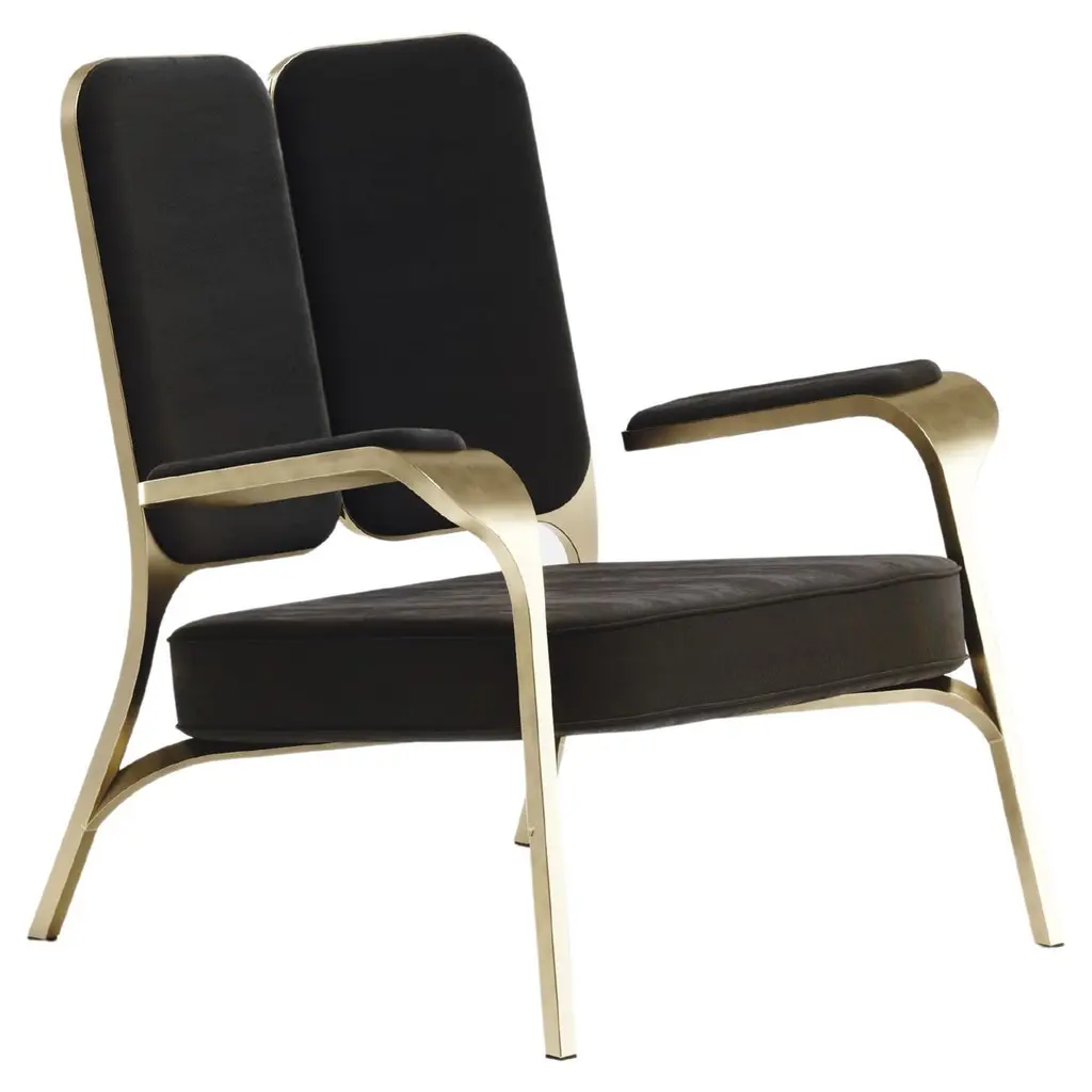 Set Of 2 Upholstered Armchairs With Bronze-Patina Brass Details By R&y Augousti