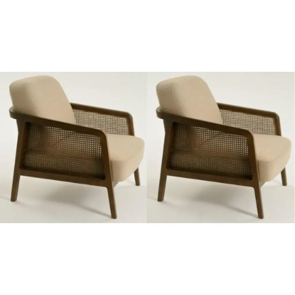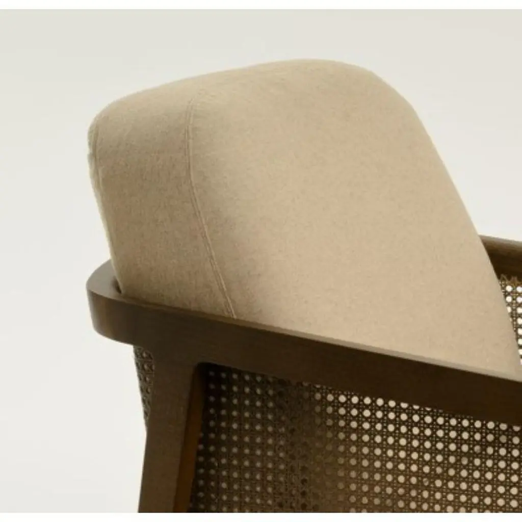 Set of 2, Vienna Lounge Canaletto beige by Colé Italia with Emmanuel GallinaDimensions: H 78, W 53, D 50 cmMaterials: Lounge armchair in stained beech wood and straw; upholstered seat and back ( Cat CC)Finishing: CA Canaletto, WE Wengè, BK Black, Also Available: Vienna Chair, Vienna Little Armchair, & Different MaterialsTC: C.O.M. fabric - send us your own materialCA: Cat A - Angel (polypropylene), Ganesha (synt. leather), Nord Wool (felt)CB: Cat B - Tiffany (polyestere), Lana (aquaclean)CC: Cat C - Velvetforthy (Velvet), Topia (wool), Novum (Wool), Opera (felt)CP: Cat P - Milano (full grain leather) Vienna is an extraordinarily comfortable and elegant collection of chairs and armchairs designed by Emmanuel Gallinawho loves to quote Brancusi when saying that “simplicity is complexity resolved”. Inspired to the 50’s of Marcel Gascoin,but also to Vienna at the end of the 19th century. A tribute to Alfred Sloan’s American pragmatism joined to Europeanstyling and, in this particular case, to the renowned Italian talent constantly aiming to harmonize beauty and functionality.In solid beech and straw, it is a perfect combination between digital machines and handcraft. The structure is in solidbeech. The back is in hand-braided Vienna straw fixed in a milling. The padded seat is available in different fabrics fittedfor contract use. In the variation Vienna Soft, both chair and armchair have totally upholstered seat and back.Colé is a young Italian design brand, with a high-end production 100% made in Italy. Born from the experience of Matteo De Ponti, architect, who grew up in one of the most outstanding Milanese design families, and the artistic sensibility of Laura Macagno, degree in Economics and passionate of art and design. Our Mission is to create design icons, beautiful and comfortable pieces that can Stand the test of time, furnishing houses of international and sophisticated clients, and realized with craftsmanship, thus unique. “We love objects which own deep roots, excellent quality, and a strong evocative power. Archetypal forms dressed with new beauty without losing their classical composure”.Our expressive research is inspired by the utopian force of Italian eminences grises architects and designers of the ’50s, the Scandinavian design, the Bauhaus, ethnic handcraft and houses of famous writers of the XX century, all different as a style but united by the intense soul of those who worked and lived there.