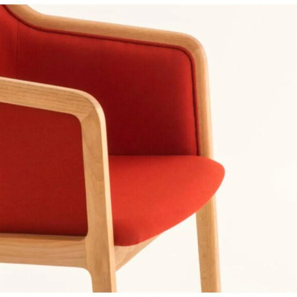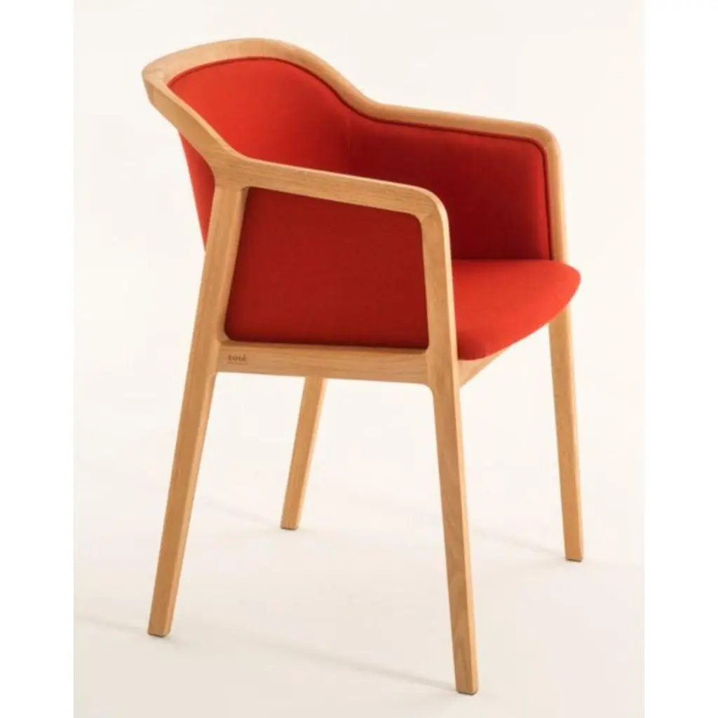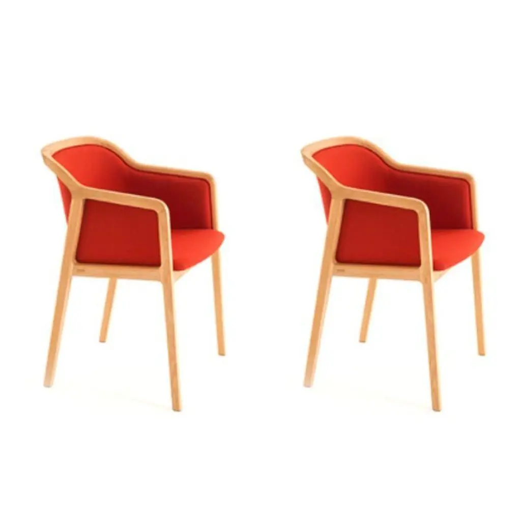 Set of 2, Vienna soft little armchair, chili by Colé Italia with Emmanuel GallinaDimensions: H 78, W 53, D 50 cmMaterials: Natural beechwood little armchair with upholstered seat and back (Cat C)Also available: Vienna chair, Vienna little armchair, & different materials.TC: C.O.M. fabric - send us your own materialCA: Cat A - Angel (polypropylene), Ganesha (synt. leather), Nord Wool (felt)CB: Cat B - Tiffany (polyestere), Lana (aquaclean)CC: Cat C - Velvetforthy (Velvet), Topia (wool), Novum (Wool), Opera (felt)CP: Cat P - Milano (full grain leather) Vienna is an extraordinarily comfortable and elegant collection of chairs and armchairs designed by Emmanuel Gallinawho loves to quote Brancusi when saying that “simplicity is complexity resolved”. Inspired to the 50’s of Marcel Gascoin,but also to Vienna at the end of the 19th century. A tribute to Alfred Sloan’s American pragmatism joined to Europeanstyling and, in this particular case, to the renowned Italian talent constantly aiming to harmonize beauty and functionality.In solid beech and straw, it is a perfect combination between digital machines and handcraft. The structure is in solidbeech. The back is in hand-braided Vienna straw fixed in a milling. The padded seat is available in different fabrics fittedfor contract use. In the variation Vienna Soft, both chair and armchair have totally upholstered seat and back.Colé is a young Italian design brand, with a high-end production 100% made in Italy. Born from the experience of Matteo De Ponti, architect, who grew up in one of the most outstanding Milanese design families, and the artistic sensibility of Laura Macagno, degree in Economics and passionate of art and design. Our Mission is to create design icons, beautiful and comfortable pieces that can Stand the test of time, furnishing houses of international and sophisticated clients, and realized with craftsmanship, thus unique. “We love objects which own deep roots, excellent quality, and a strong evocative power. Archetypal forms dressed with new beauty without losing their classical composure”.Our expressive research is inspired by the utopian force of Italian eminences grises architects and designers of the ’50s, the Scandinavian design, the Bauhaus, ethnic handcraft and houses of famous writers of the XX century, all different as a style but united by the intense soul of those who worked and lived there.
