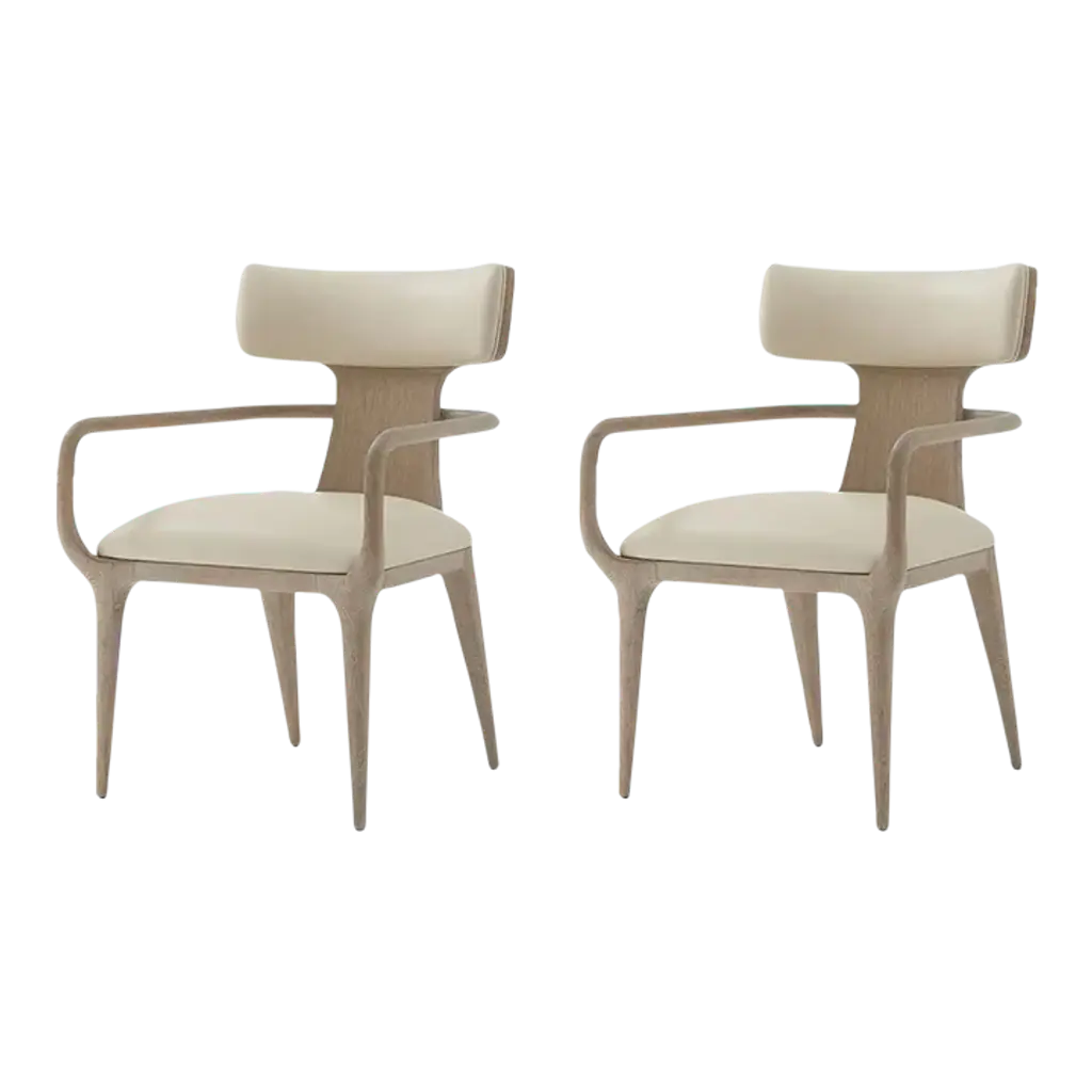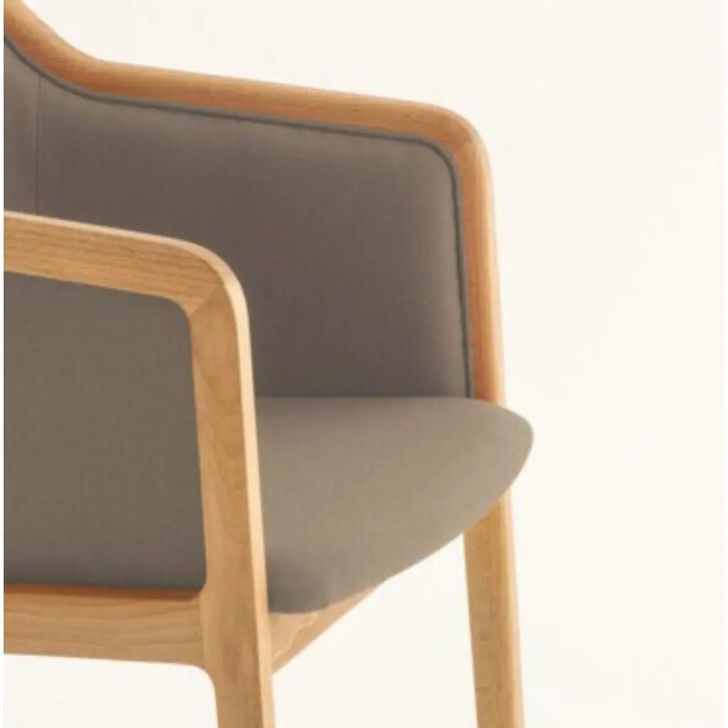 Set of 2, Vienna soft little armchairs, chrome by Colé Italia with Emmanuel GallinaDimensions: H 78, W 53, D 50 cmMaterials: Natural beechwood little armchair with upholstered seat and back (Cat C)Also available: Vienna chair, Vienna little armchair, & different materials,TC: C.O.M. fabric - send us your own materialCA: Cat A - Angel (polypropylene), Ganesha (synt. leather), Nord Wool (felt)CB: Cat B - Tiffany (polyestere), Lana (aquaclean)CC: Cat C - Velvetforthy (Velvet), Topia (wool), Novum (Wool), Opera (felt)CP: Cat P - Milano (full grain leather) Vienna is an extraordinarily comfortable and elegant collection of chairs and armchairs designed by Emmanuel Gallinawho loves to quote Brancusi when saying that “simplicity is complexity resolved”. Inspired to the 50’s of Marcel Gascoin,but also to Vienna at the end of the 19th century. A tribute to Alfred Sloan’s American pragmatism joined to Europeanstyling and, in this particular case, to the renowned Italian talent constantly aiming to harmonize beauty and functionality.In solid beech and straw, it is a perfect combination between digital machines and handcraft. The structure is in solidbeech. The back is in hand-braided Vienna straw fixed in a milling. The padded seat is available in different fabrics fittedfor contract use. In the variation Vienna Soft, both chair and armchair have totally upholstered seat and back.Colé is a young Italian design brand, with a high-end production 100% made in Italy. Born from the experience of Matteo De Ponti, architect, who grew up in one of the most outstanding Milanese design families, and the artistic sensibility of Laura Macagno, degree in Economics and passionate of art and design. Our Mission is to create design icons, beautiful and comfortable pieces that can Stand the test of time, furnishing houses of international and sophisticated clients, and realized with craftsmanship, thus unique. “We love objects which own deep roots, excellent quality, and a strong evocative power. Archetypal forms dressed with new beauty without losing their classical composure”.Our expressive research is inspired by the utopian force of Italian eminences grises architects and designers of the ’50s, the Scandinavian design, the Bauhaus, ethnic handcraft and houses of famous writers of the XX century, all different as a style but united by the intense soul of those who worked and lived there.