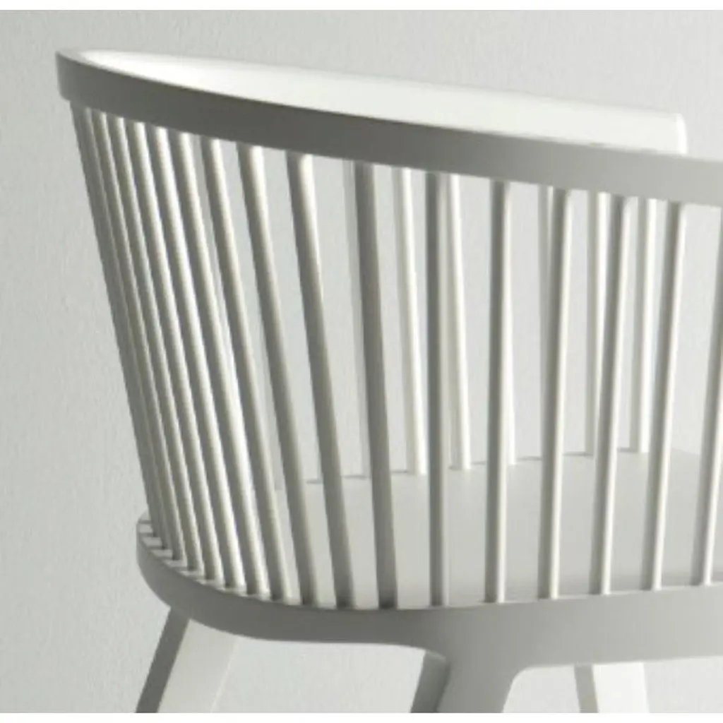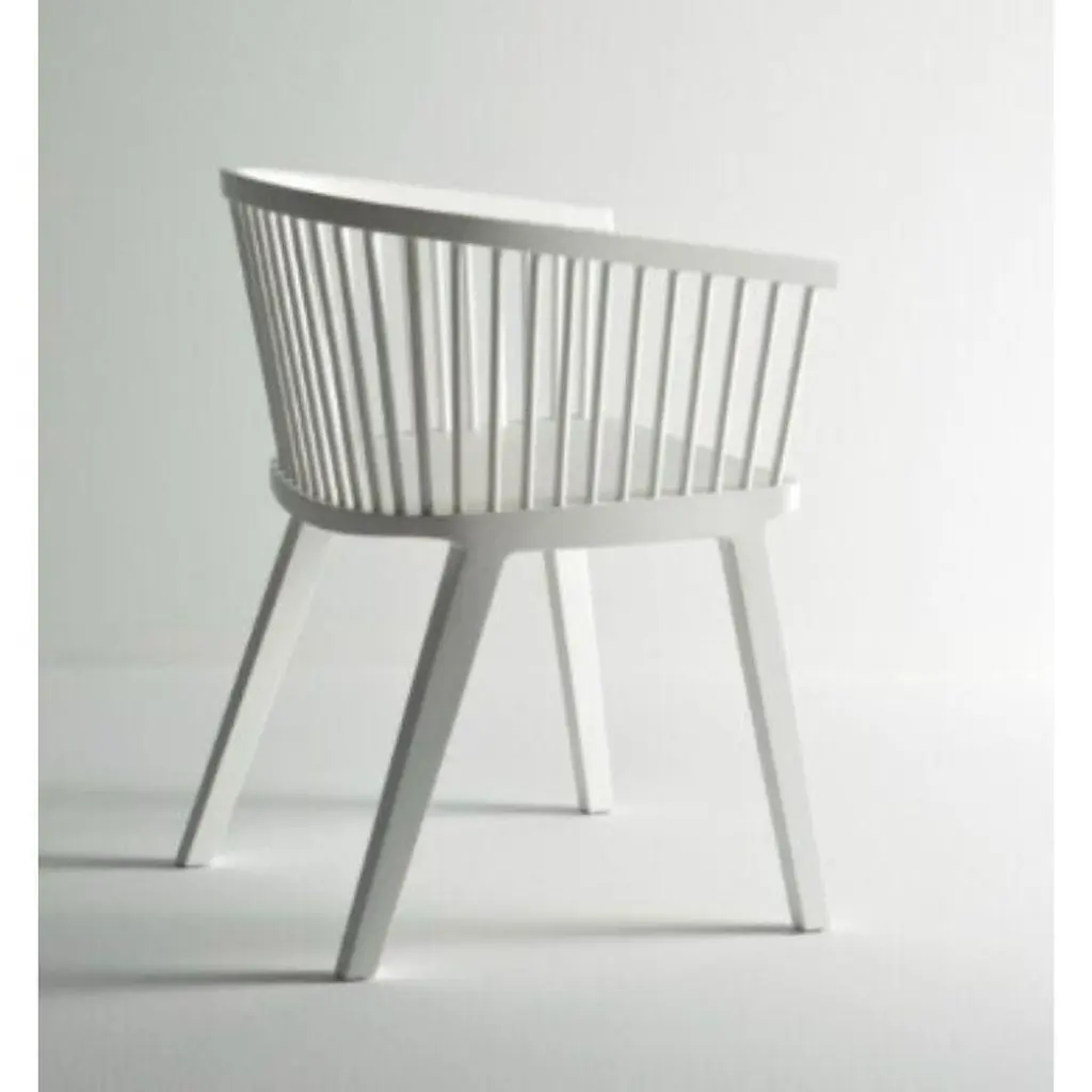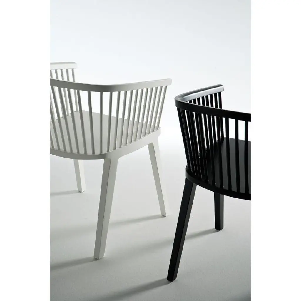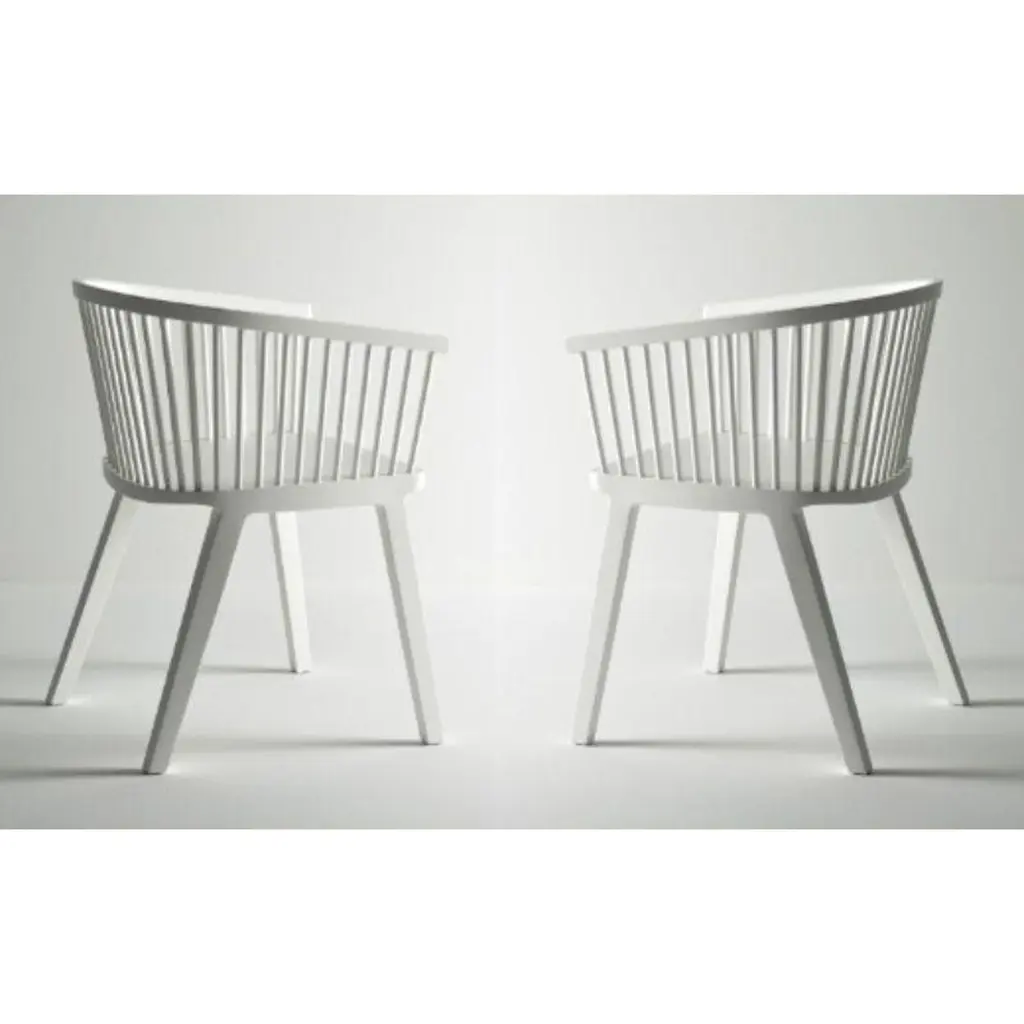Set of 4, Secreto little armchair - white matt lacquer by Colé Italia with Lorenz KazDimensions: H 76, D 52, W 57, cmMaterials: Solid beech wood natural or lacquered finishingAlso Available: Secreto Little Armchair Black Matt Lacquer, Natural Beech & Different Upholstery Options.TC: C.O.M. fabric - send us your own materialCA: Cat A - Angel (polypropylene), Ganesha (synt. leather), Nord Wool (felt)CB: Cat B - Tiffany (polyestere), Lana (aquaclean)CC: Cat C - Velvetforthy (Velvet), Topia (wool), Novum (Wool), Opera (felt)CP: Cat P - Milano (full grain leather) Modern and traditional at the same time. Inspired to the traditional Windsor Chair with a clear brief brilliantly interpreted by duo Lorenz + Kaz — to work inspired by traditional furniture creating industrial design with artisan taste. A key element is the structure, which denotes the complexity linked to the manufacture and to different levels of details, especially in the back, composed of interlocking rods inserted into the base one by one by hand. Available in solid beech with a transparent water eco paint coat or matt lacquered in white or black. Secreto armchair can be dressed with an optional upholstered cushion for the back and the seat with lining in different fabric categoriesColé is a young Italian design brand, with a high-end production 100% made in Italy. Born from the experience of Matteo De Ponti, architect, who grew up in one of the most outstanding Milanese design families, and the artistic sensibility of Laura Macagno, degree in Economics and passionate of art and design. Our Mission is to create design icons, beautiful and comfortable pieces that can Stand the test of time, furnishing houses of international and sophisticated clients, and realized with craftsmanship, thus unique. “We love objects which own deep roots, excellent quality, and a strong evocative power. Archetypal forms dressed with new beauty without losing their classical composure”.Our expressive research is inspired by the utopian force of Italian eminences grises architects and designers of the ’50s, the Scandinavian design, the Bauhaus, ethnic handcraft and houses of famous writers of the XX century, all different as a style but united by the intense soul of those who worked and lived there.
