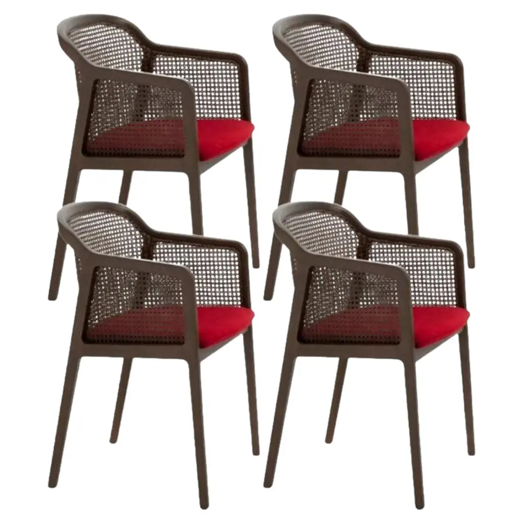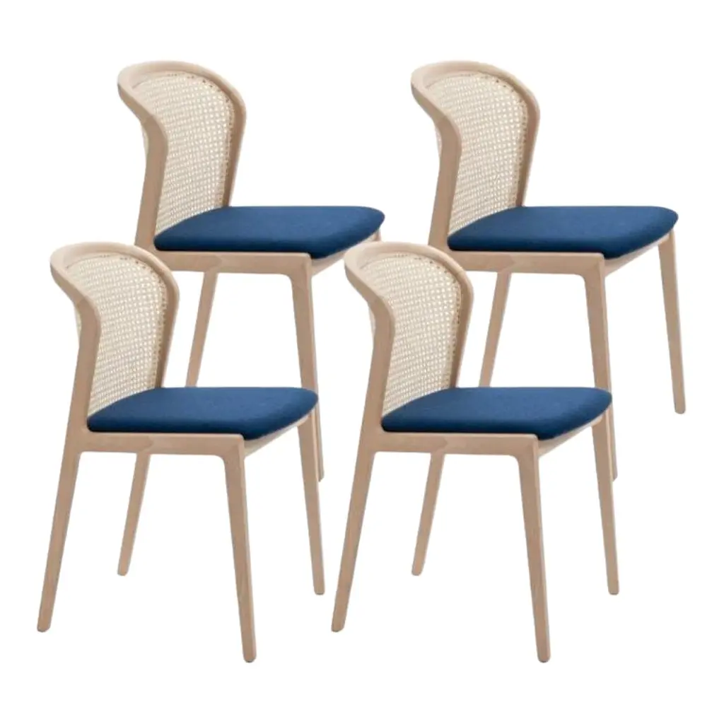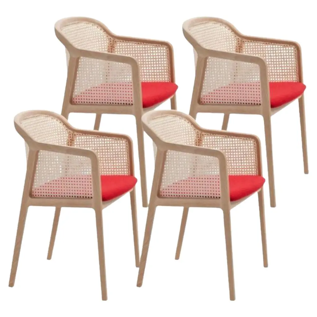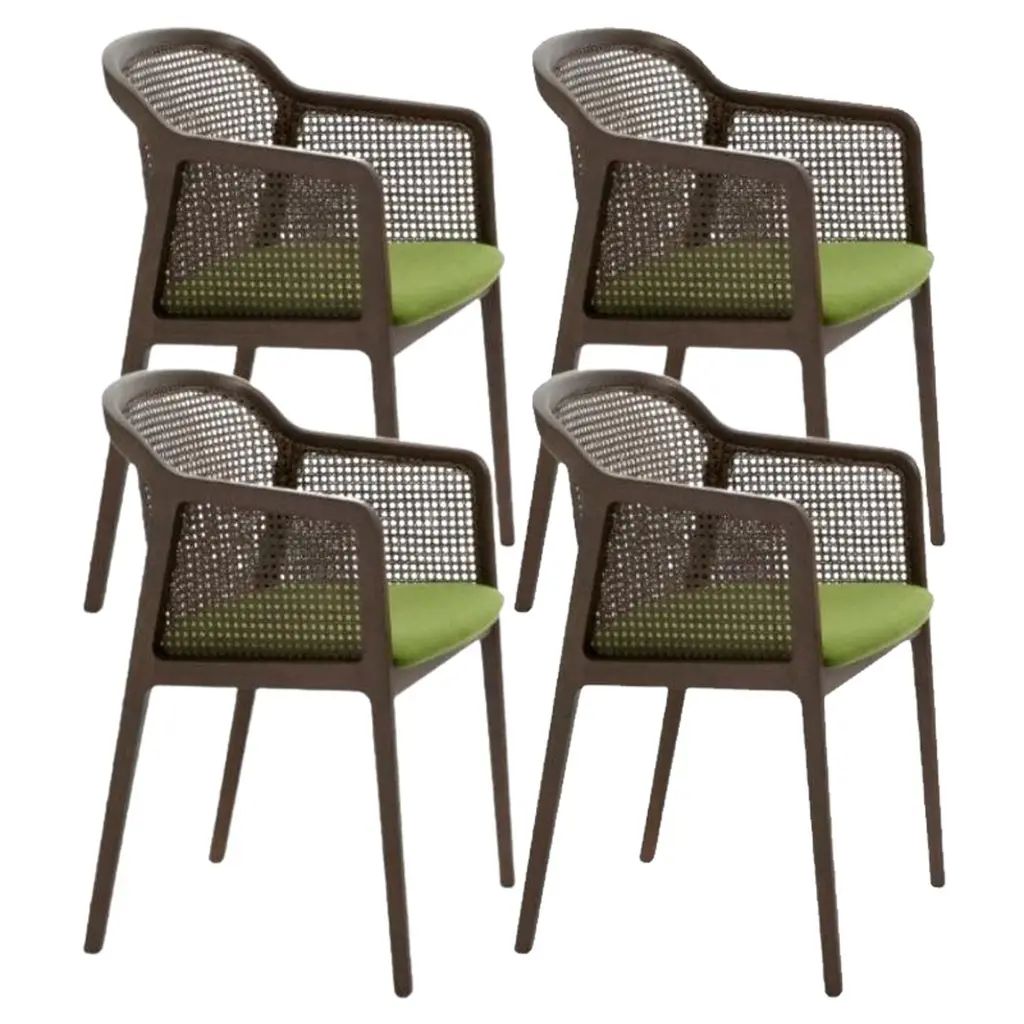 Set of 4, Vienna Little armchair, Beech Wood, Acid Green by Colé Italia with Emmanuel GallinaDimensions: H 78, W 53, D 50 cmMaterials: Stained Beech Wood Chair with Straw Back and Upholstered SeatAlso Available: CA Canaletto; WE Wengé; BK Black, Vienna Chair, Vienna Soft Little Armchair, & Different Materials.TC: C.O.M. fabric - send us your own materialCA: Cat A - Angel (polypropylene), Ganesha (synt. leather), Nord Wool (felt)CB: Cat B - Tiffany (polyestere), Lana (aquaclean)CC: Cat C - Velvetforthy (Velvet), Topia (wool), Novum (Wool), Opera (felt)CP: Cat P - Milano (full grain leather) Vienna is an extraordinarily comfortable and elegant collection of chairs and armchairs designed by Emmanuel Gallinawho loves to quote Brancusi when saying that “simplicity is complexity resolved”. Inspired to the 50’s of Marcel Gascoin,but also to Vienna at the end of the 19th century. A tribute to Alfred Sloan’s American pragmatism joined to Europeanstyling and, in this particular case, to the renowned Italian talent constantly aiming to harmonize beauty and functionality.In solid beech and straw, it is a perfect combination between digital machines and handcraft. The structure is in solidbeech. The back is in hand-braided Vienna straw fixed in a milling. The padded seat is available in different fabrics fittedfor contract use. In the variation Vienna Soft, both chair and armchair have totally upholstered seat and back.Colé is a young Italian design brand, with a high-end production 100% made in Italy. Born from the experience of Matteo De Ponti, architect, who grew up in one of the most outstanding Milanese design families, and the artistic sensibility of Laura Macagno, degree in Economics and passionate of art and design. Our Mission is to create design icons, beautiful and comfortable pieces that can Stand the test of time, furnishing houses of international and sophisticated clients, and realized with craftsmanship, thus unique. “We love objects which own deep roots, excellent quality, and a strong evocative power. Archetypal forms dressed with new beauty without losing their classical composure”.Our expressive research is inspired by the utopian force of Italian eminences grises architects and designers of the ’50s, the Scandinavian design, the Bauhaus, ethnic handcraft and houses of famous writers of the XX century, all different as a style but united by the intense soul of those who worked and lived there.