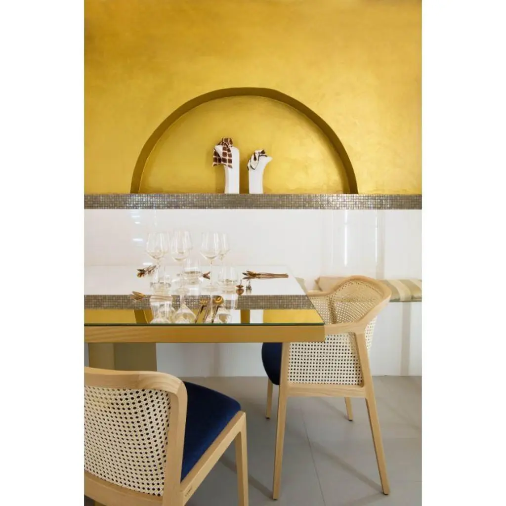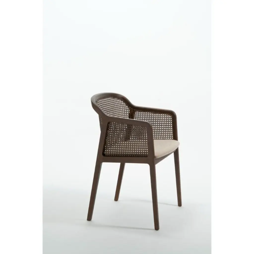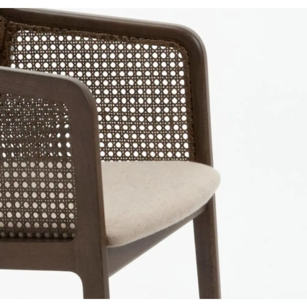 Set of 4, Vienna Little armchair, Stained Beech Wood, Beige by Colé Italia with Emmanuel GallinaDimensions: H 78, W 53, D 50 cmMaterials: Stained beech wood little armchair with Vienna straw back, and upholstered seatWood stained finishing: CA Canaletto; WE Wengé; BK BlackAlso Available: Natural Beech Wood, Vienna Chair, Vienna Soft Little Armchair, & Different Materials, please contact usTC: C.O.M. fabric - send us your own materialCA: Cat A - Angel (polypropylene), Ganesha (synt. leather), Nord Wool (felt)CB: Cat B - Tiffany (polyestere), Lana (aquaclean)CC: Cat C - Velvetforthy (Velvet), Topia (wool), Novum (Wool), Opera (felt)CP: Cat P - Milano (full grain leather) Vienna is an extraordinarily comfortable and elegant collection of chairs and armchairs designed by Emmanuel Gallinawho loves to quote Brancusi when saying that “simplicity is complexity resolved”. Inspired to the 50’s of Marcel Gascoin,but also to Vienna at the end of the 19th century. A tribute to Alfred Sloan’s American pragmatism joined to Europeanstyling and, in this particular case, to the renowned Italian talent constantly aiming to harmonize beauty and functionality.In solid beech and straw, it is a perfect combination between digital machines and handcraft. The structure is in solidbeech. The back is in hand-braided Vienna straw fixed in a milling. The padded seat is available in different fabrics fittedfor contract use. In the variation Vienna Soft, both chair and armchair have totally upholstered seat and back.Colé is a young Italian design brand, with a high-end production 100% made in Italy. Born from the experience of Matteo De Ponti, architect, who grew up in one of the most outstanding Milanese design families, and the artistic sensibility of Laura Macagno, degree in Economics and passionate of art and design. Our Mission is to create design icons, beautiful and comfortable pieces that can Stand the test of time, furnishing houses of international and sophisticated clients, and realized with craftsmanship, thus unique. “We love objects which own deep roots, excellent quality, and a strong evocative power. Archetypal forms dressed with new beauty without losing their classical composure”.Our expressive research is inspired by the utopian force of Italian eminences grises architects and designers of the ’50s, the Scandinavian design, the Bauhaus, ethnic handcraft and houses of famous writers of the XX century, all different as a style but united by the intense soul of those who worked and lived there.