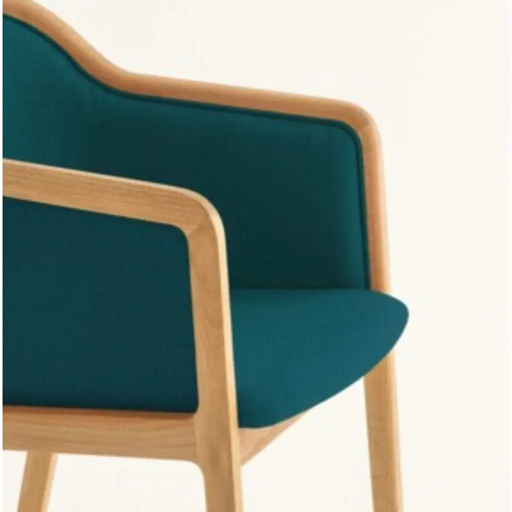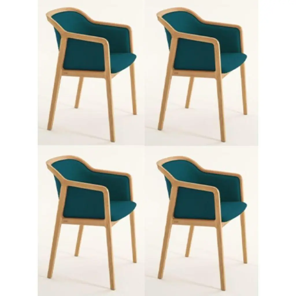 Set of 4, Vienna Soft Little armchair, Azur by Colé Italia with Emmanuel GallinaDimensions: H 78, W 53, D 50 cmMaterials: Natural beechwood little armchair with upholstered seat and back (Cat C)Also Available: Vienna Chair, Vienna Little Armchair, & Different MaterialsTC: C.O.M. fabric - send us your own materialCA: Cat A - Angel (polypropylene), Ganesha (synt. leather), Nord Wool (felt)CB: Cat B - Tiffany (polyestere), Lana (aquaclean)CC: Cat C - Velvetforthy (Velvet), Topia (wool), Novum (Wool), Opera (felt)CP: Cat P - Milano (full grain leather) Vienna is an extraordinarily comfortable and elegant collection of chairs and armchairs designed by Emmanuel Gallinawho loves to quote Brancusi when saying that “simplicity is complexity resolved”. Inspired to the 50’s of Marcel Gascoin,but also to Vienna at the end of the 19th century. A tribute to Alfred Sloan’s American pragmatism joined to Europeanstyling and, in this particular case, to the renowned Italian talent constantly aiming to harmonize beauty and functionality.In solid beech and straw, it is a perfect combination between digital machines and handcraft. The structure is in solidbeech. The back is in hand-braided Vienna straw fixed in a milling. The padded seat is available in different fabrics fittedfor contract use. In the variation Vienna Soft, both chair and armchair have totally upholstered seat and back.Colé is a young Italian design brand, with a high-end production 100% made in Italy. Born from the experience of Matteo De Ponti, architect, who grew up in one of the most outstanding Milanese design families, and the artistic sensibility of Laura Macagno, degree in Economics and passionate of art and design. Our Mission is to create design icons, beautiful and comfortable pieces that can Stand the test of time, furnishing houses of international and sophisticated clients, and realized with craftsmanship, thus unique. “We love objects which own deep roots, excellent quality, and a strong evocative power. Archetypal forms dressed with new beauty without losing their classical composure”.Our expressive research is inspired by the utopian force of Italian eminences grises architects and designers of the ’50s, the Scandinavian design, the Bauhaus, ethnic handcraft and houses of famous writers of the XX century, all different as a style but united by the intense soul of those who worked and lived there.