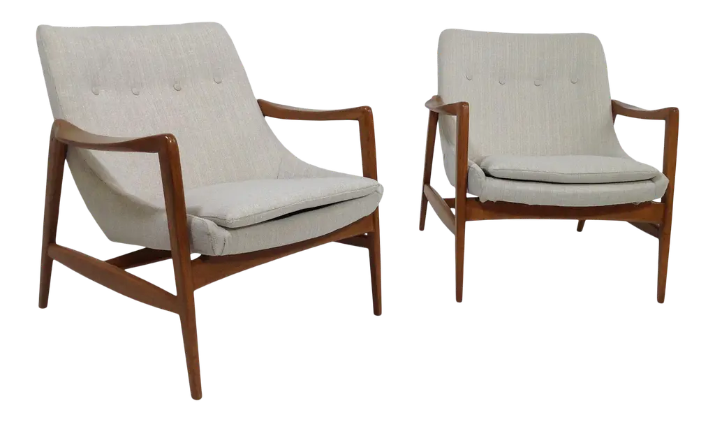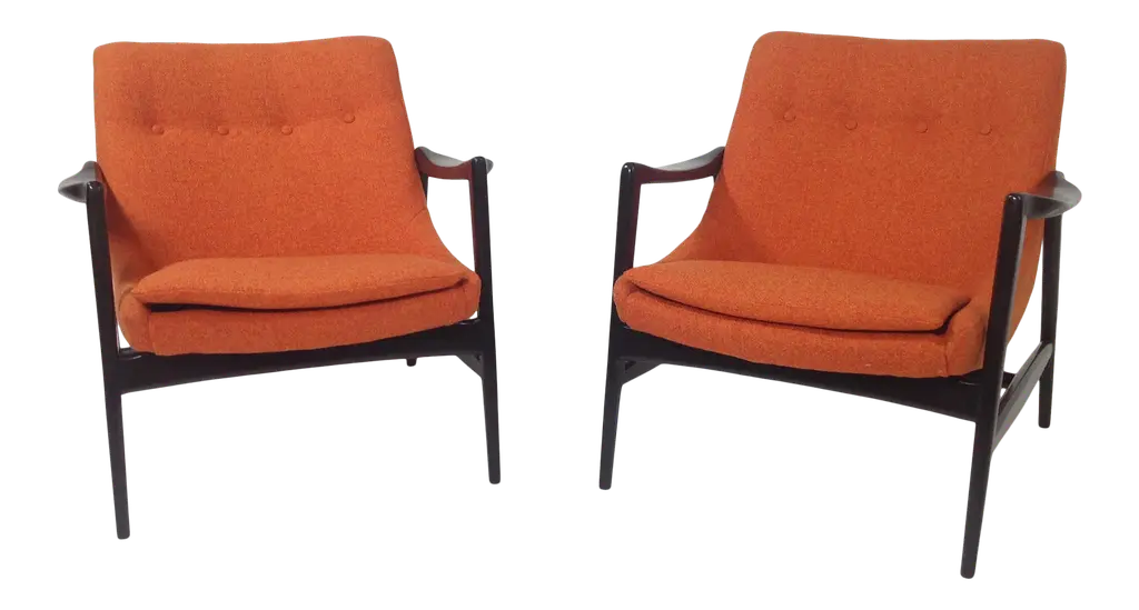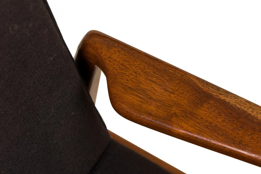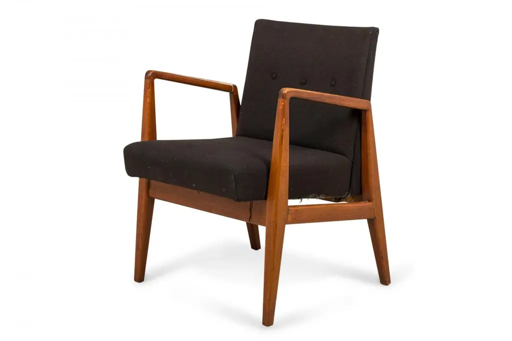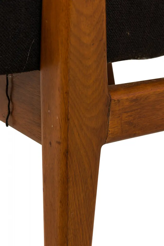 Set Of 8 Jens Risom Danish Black Fabric Upholstered Teak 'Playboy' Armchairs