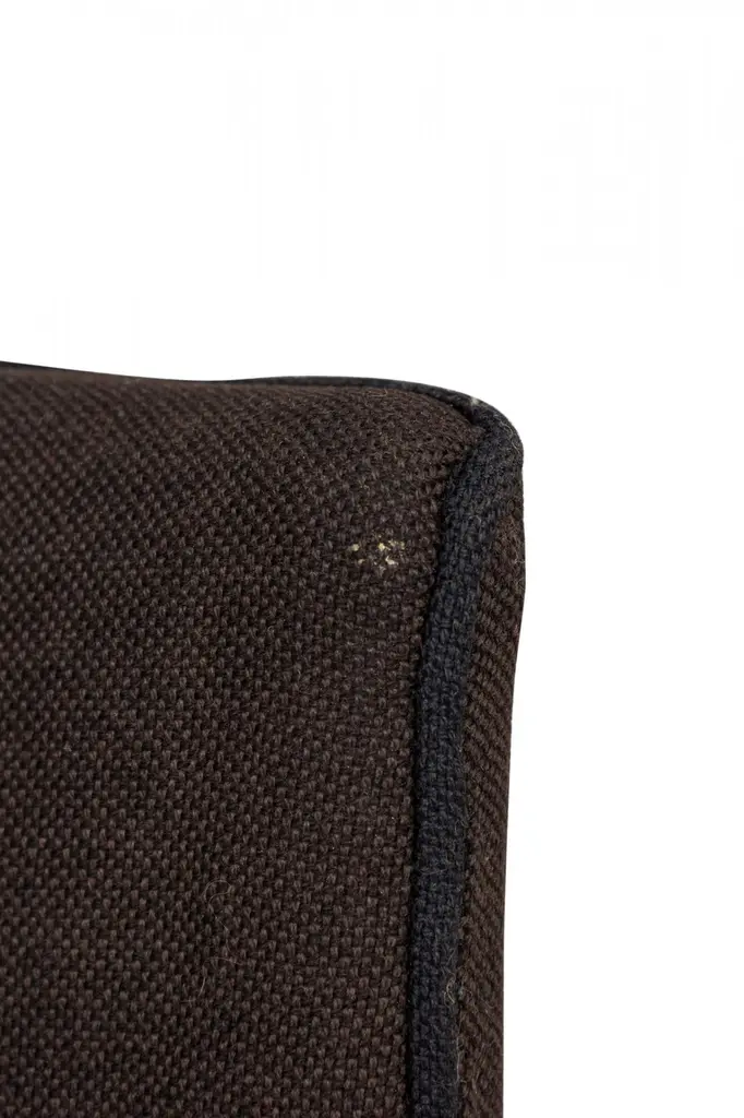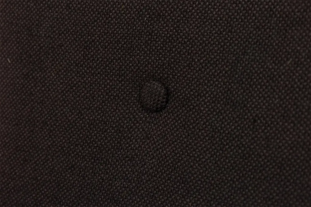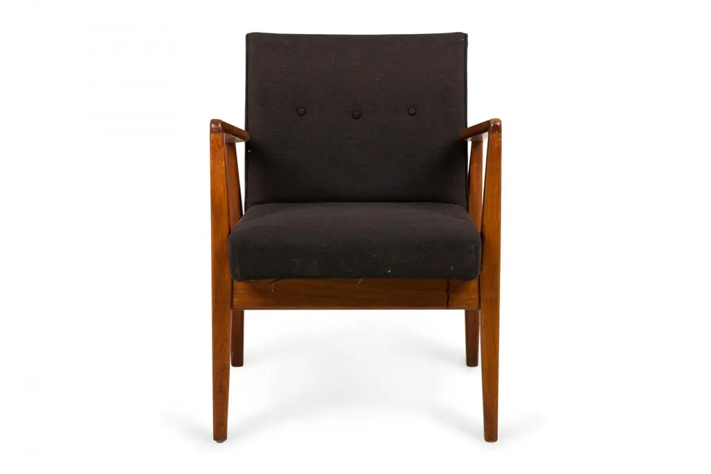 Set of 8 Danish Mid-Century "Playboy" armchairs with angular teak wood frames and black woven fabric upholstered seats and backs with button tufting. (JENS RISOM)(PRICED AS Set)Upholstery varies in condition between chairs.