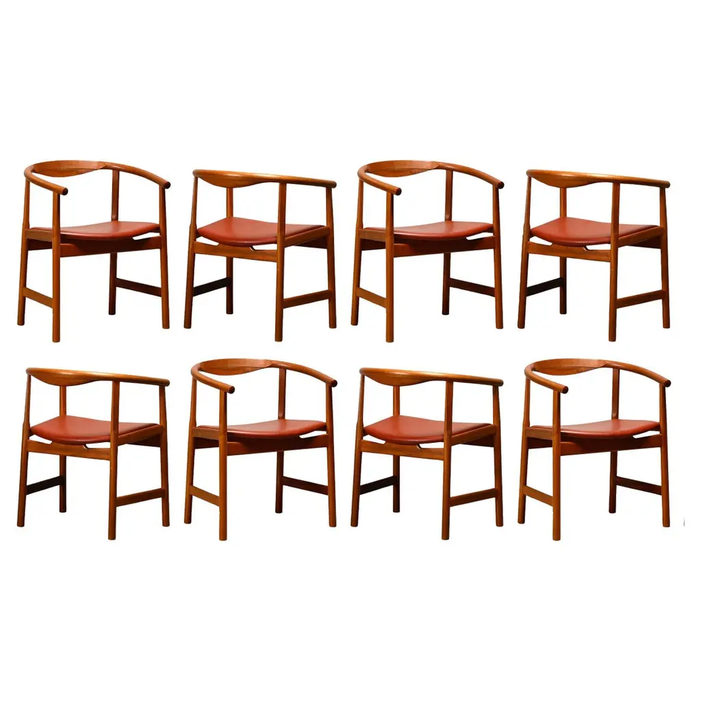 Set Of Four Teak Curved Back Armchair Model B49 By Jacob Kjaer, Circa 1955
