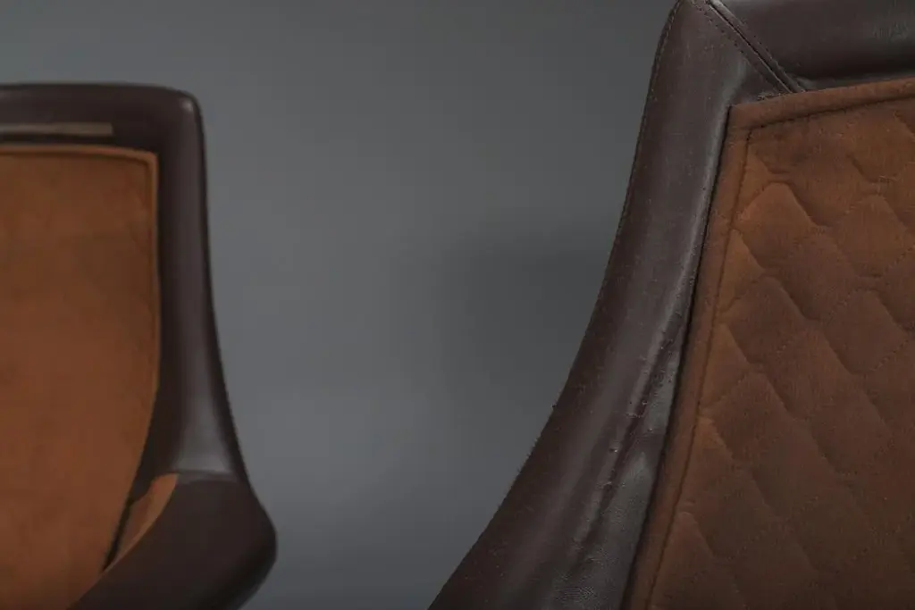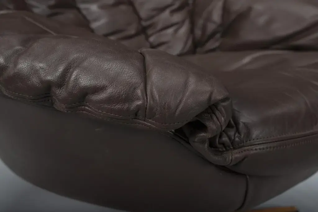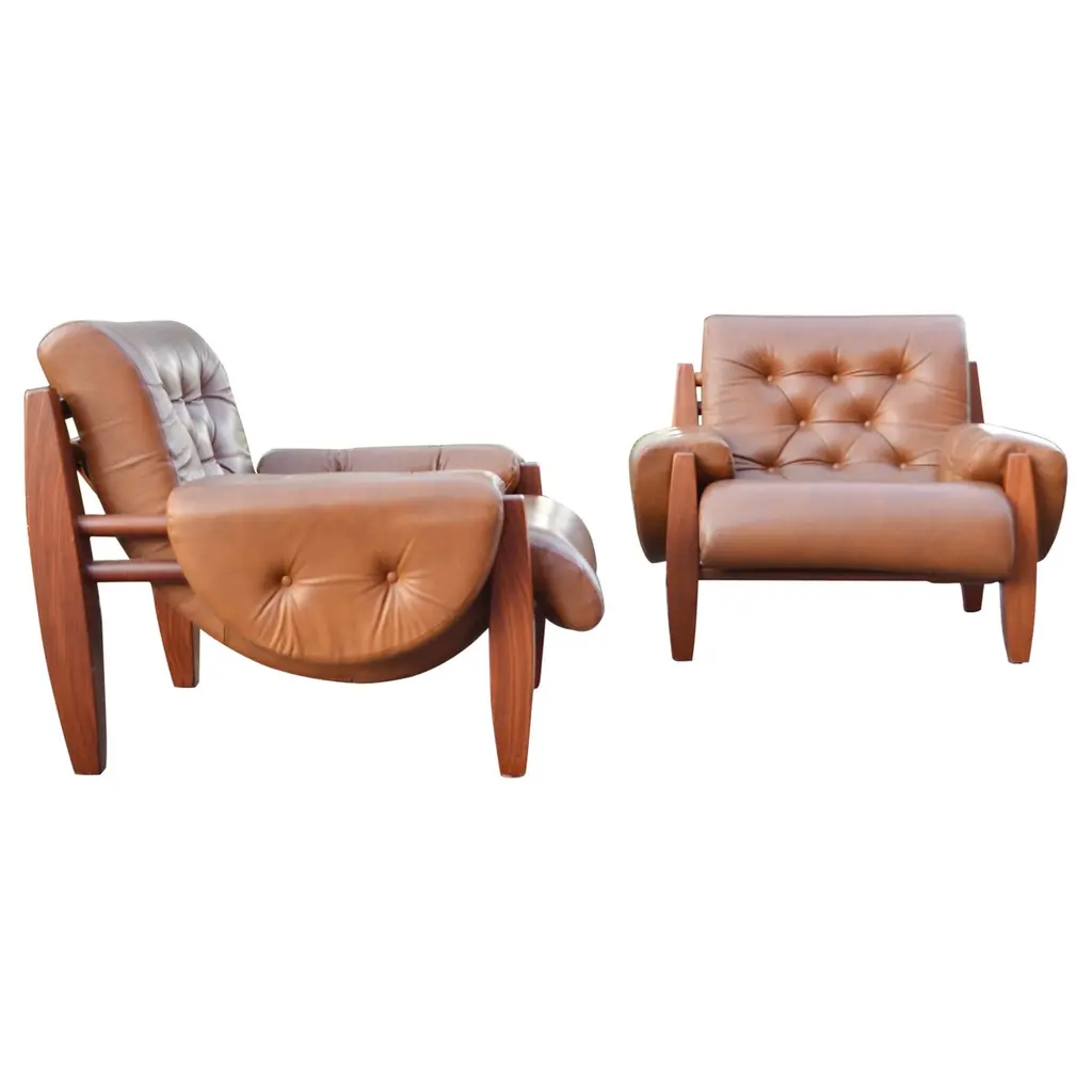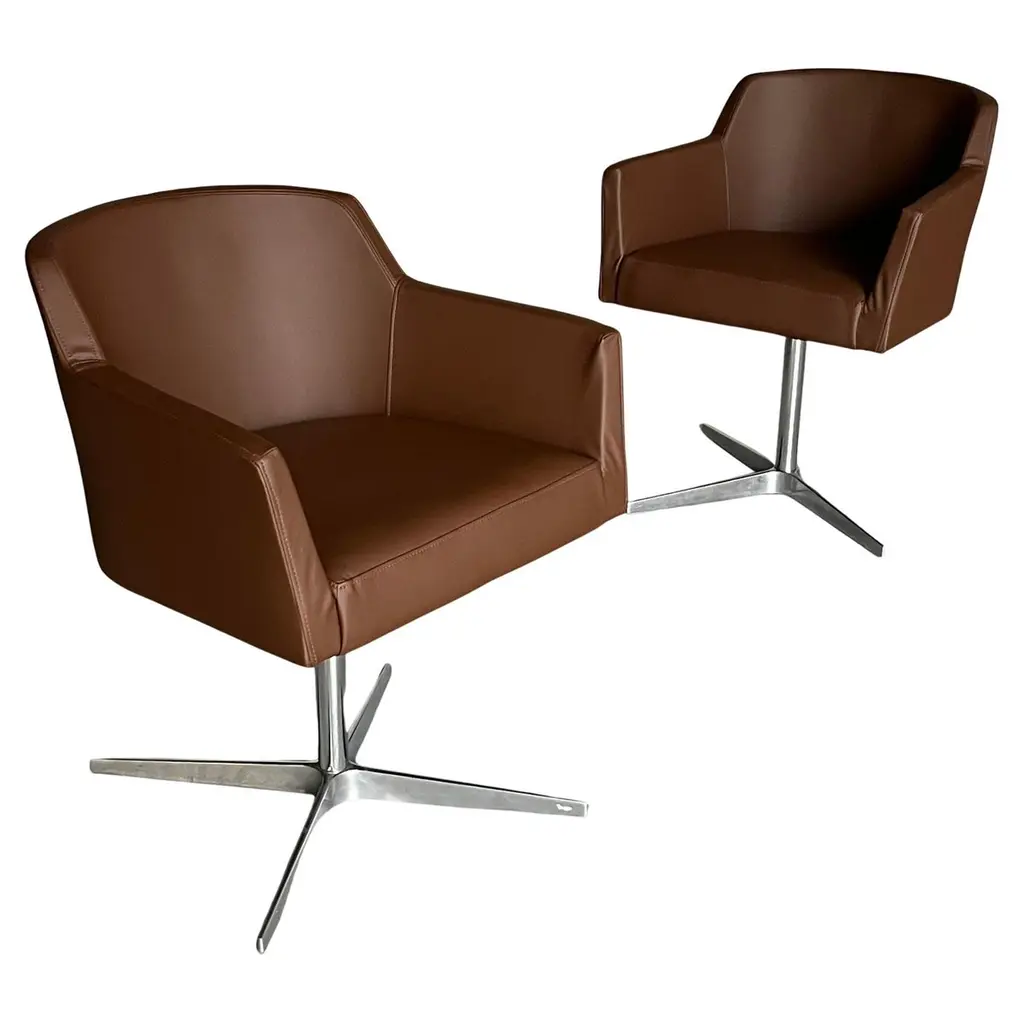 A set of two armchairs in very good condition, the leather has been refreshed, visible slight traces of use. and the cushion fasteners are missing. This piece has an attribution mark, I am sure that it is completely authentic and take full responsibility for any authenticity issues arising from misattribution