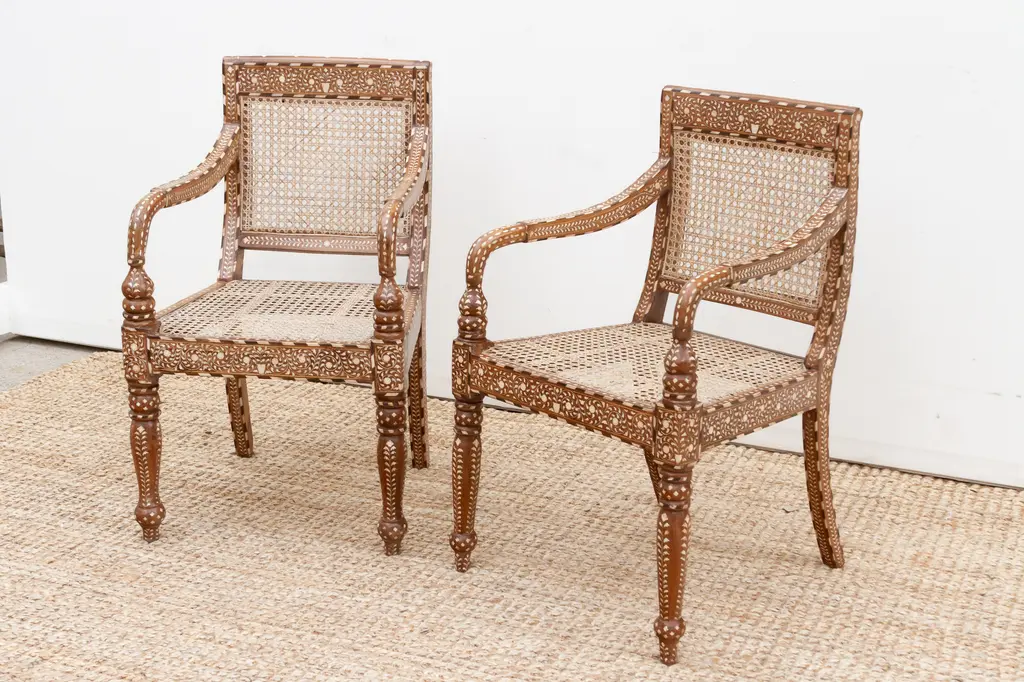 Set Of Six, Anglo Indian Inlay Armchairs