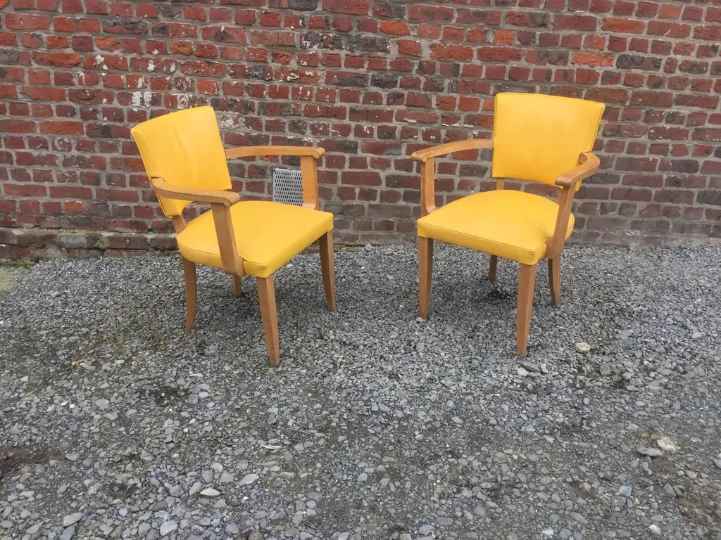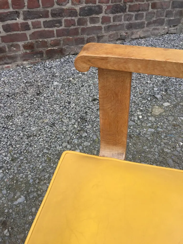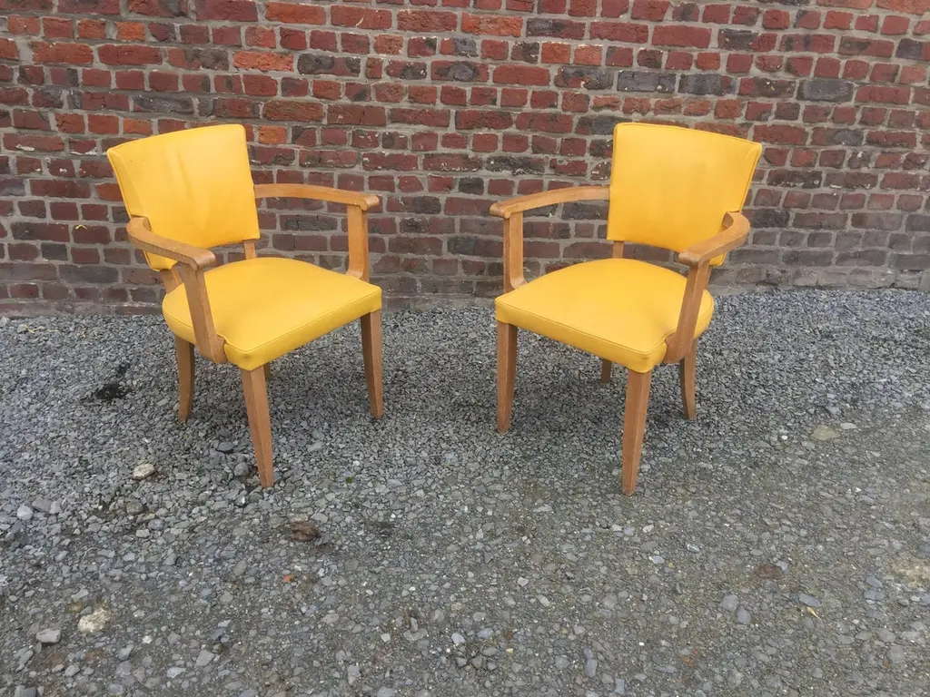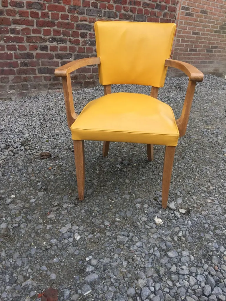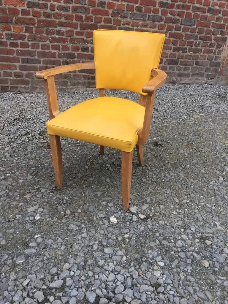 Set of ten Art Deco armchairs in oak and leather, circa 1940.