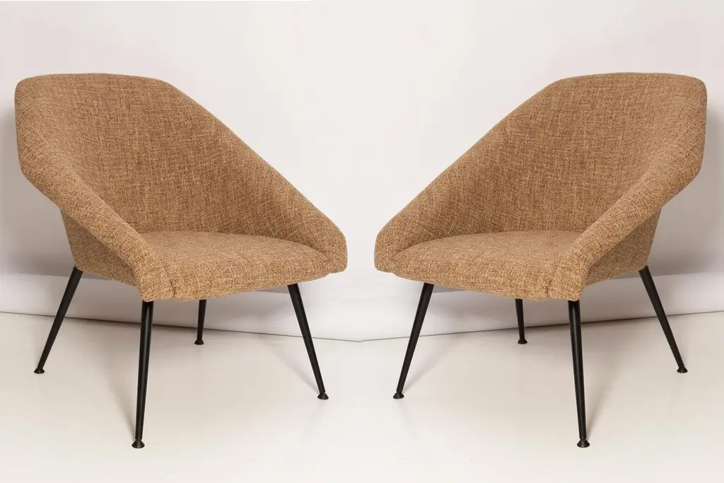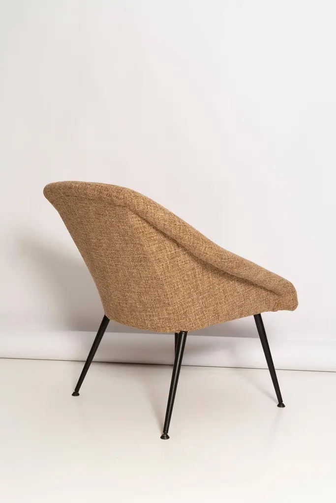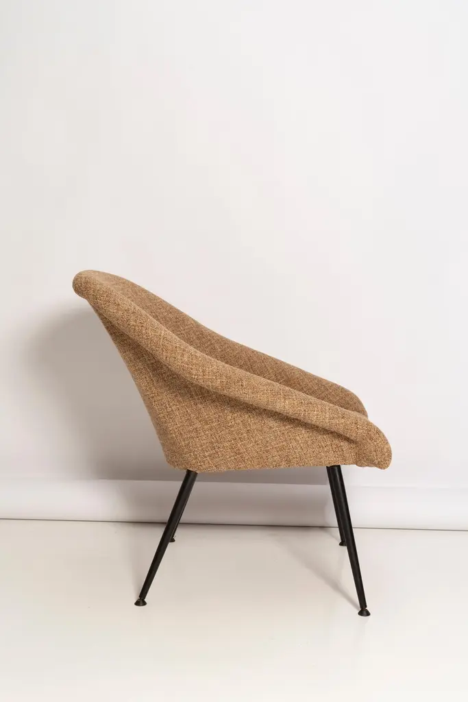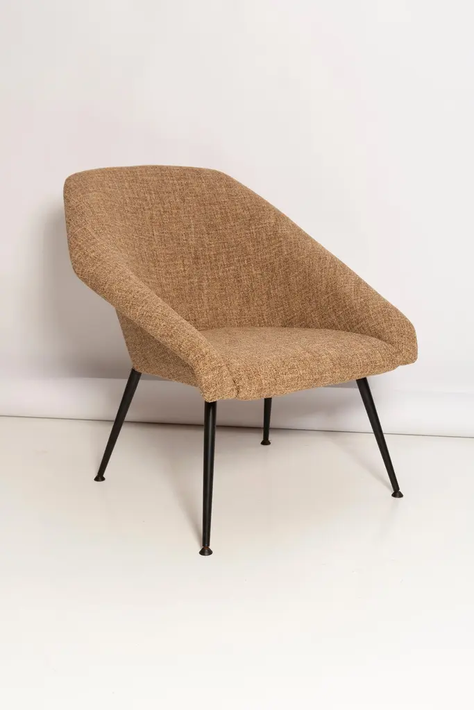 A very comfortable and effective club armchairs "EVA" produced in the 1960s by Silesian furniture factories. It fits both Classic interiors and modern, loft spaces. The armchairs are after full renovation. Upholstery in beige color. The fabric is resistant to dirt. Hand sewing. We can prepare any color of the material and legs of this set. Please check the last picture with color samples.