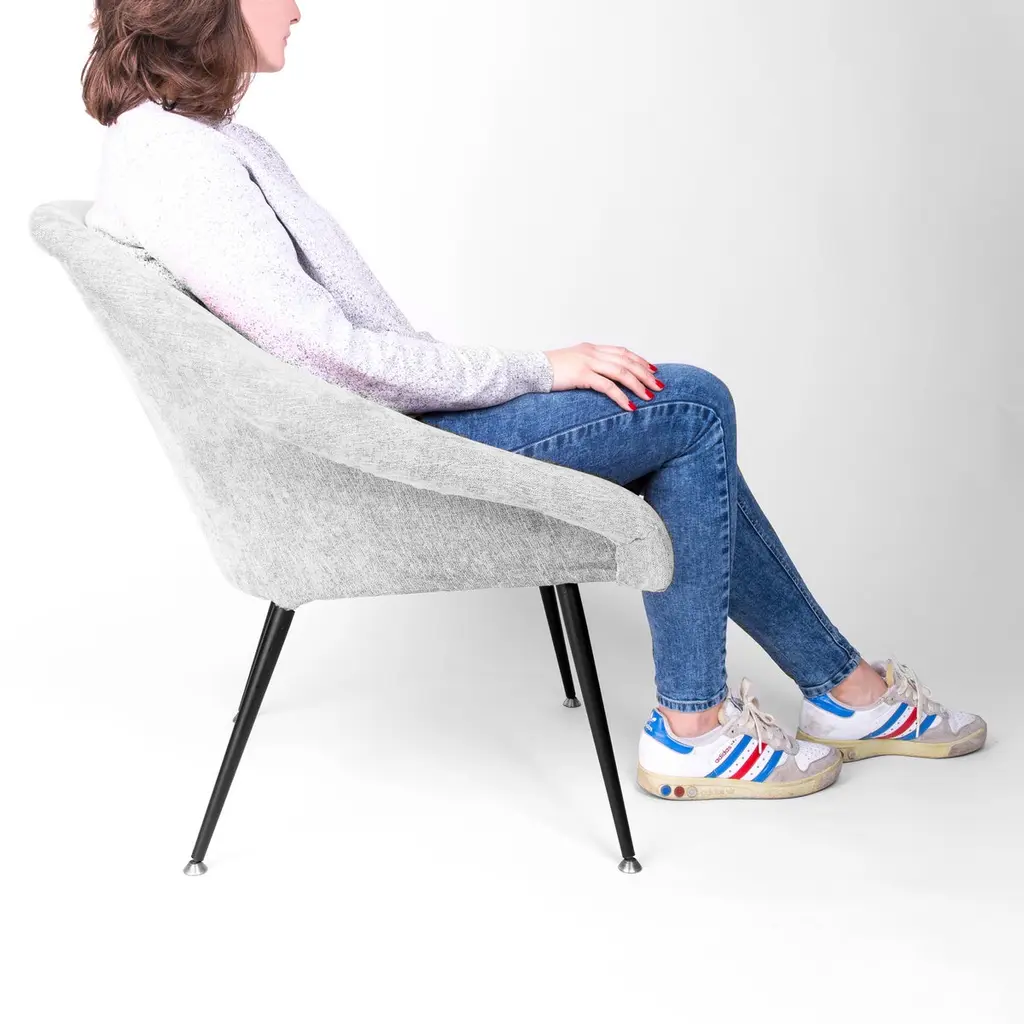 A very comfortable and effective club armchairs "EVA" produced in the 1960s by Silesian furniture factories. It fits both Classic interiors and modern, loft spaces. The armchairs are after full renovation. Upholstery in light gray color. The fabric is resistant to dirt. Hand sewing. We can prepare any color of the material and legs of this set.