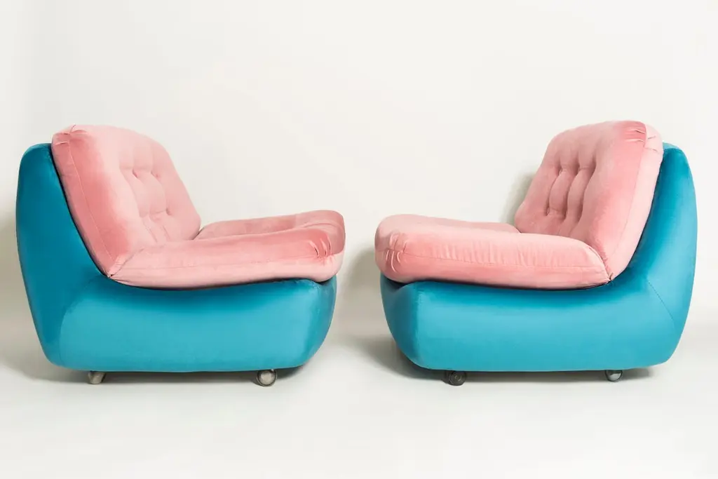 Set Of Two 20th Century Vintage Pink And Blue Atlantis Armchairs, 1960s