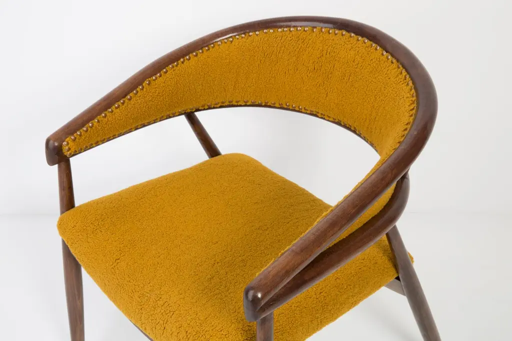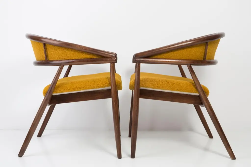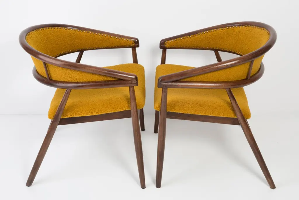 Set Of Two James Mont Bent Beech Armchairs, Yellow Ochra Boucle, 1960s