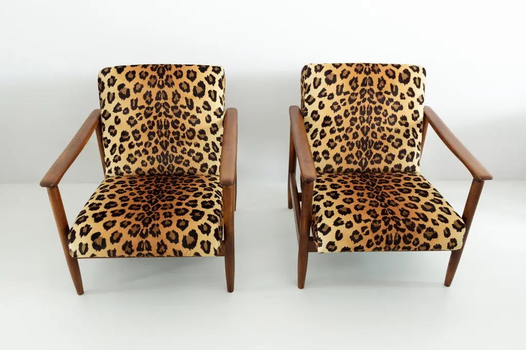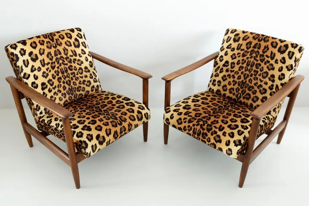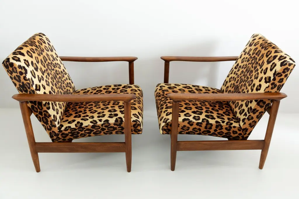 Set Of Two Leopard Print Velvet Armchairs, Edmund Homa, Gfm-142, 1960s, Poland