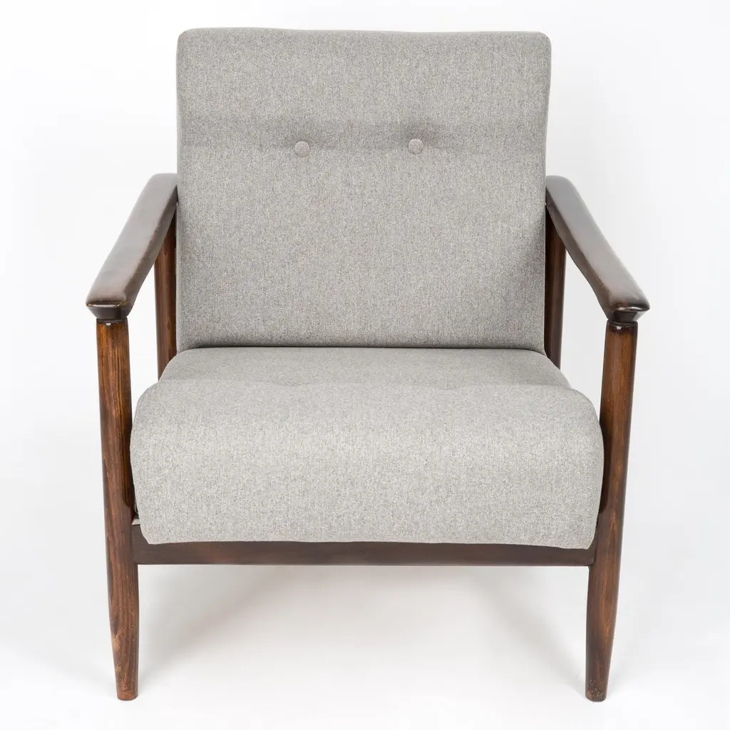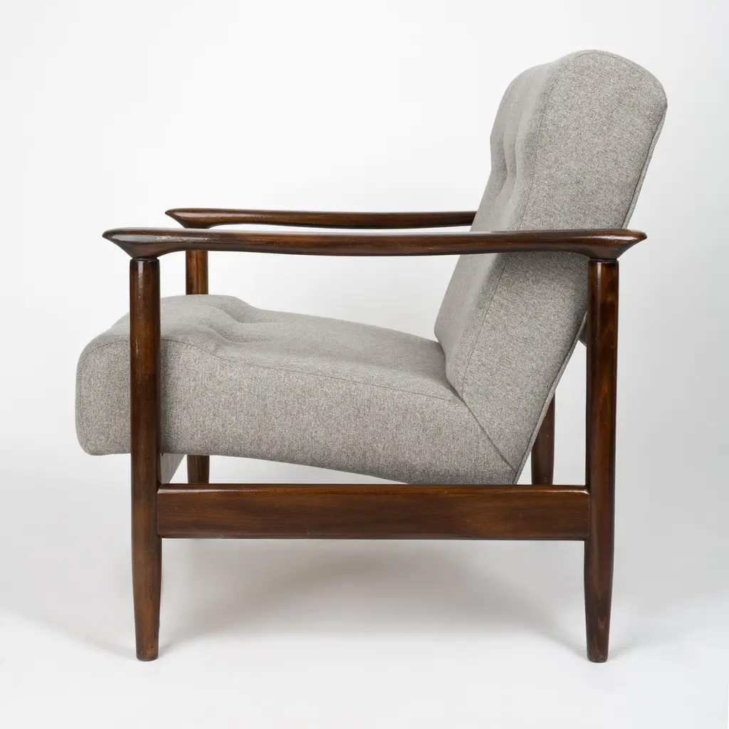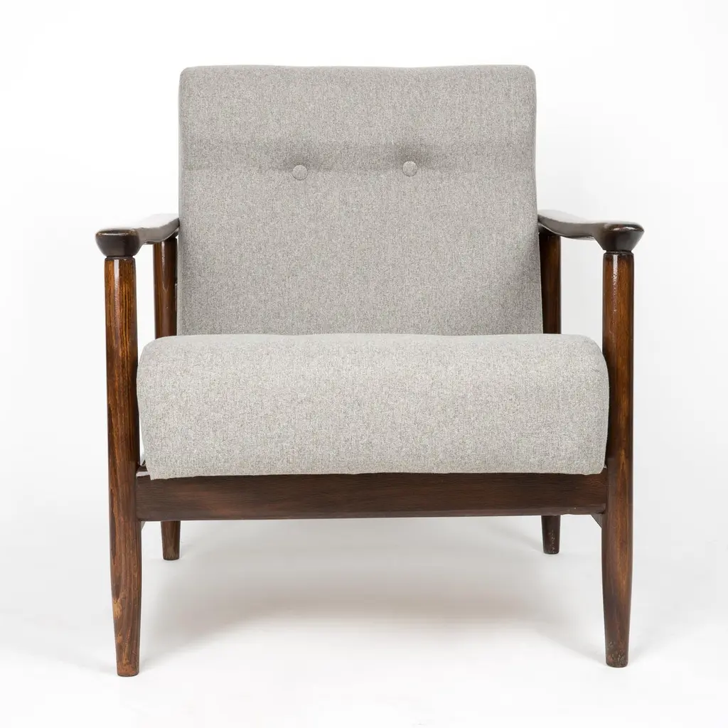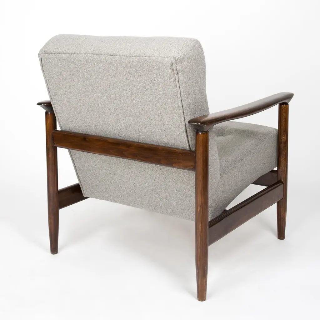 A pair of mid century armchairs GFM-142, designed by Edmund Homa. The armchairs were made in the 1960s in the Gosciecinska Furniture Factory. They are made from solid beech wood. The GFM-142 armchair is regarded one of the best Polish armchair design from the previous age. The armchairs have been thoroughly renovated. The tension belts have been changed, new upholstery foams - upholstery material has been used - beige upholstery fabric of the highest quality. We can prepare this set also in another fabric and wood color. Please check the last picture with color samples. Waiting time is 2-3 weeks.