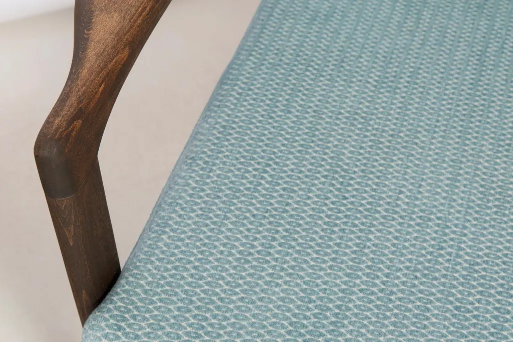 Set Of Two Midcentury Baby Blue Pattern Velvet Armchairs, Zenon Baczyk, 1960s