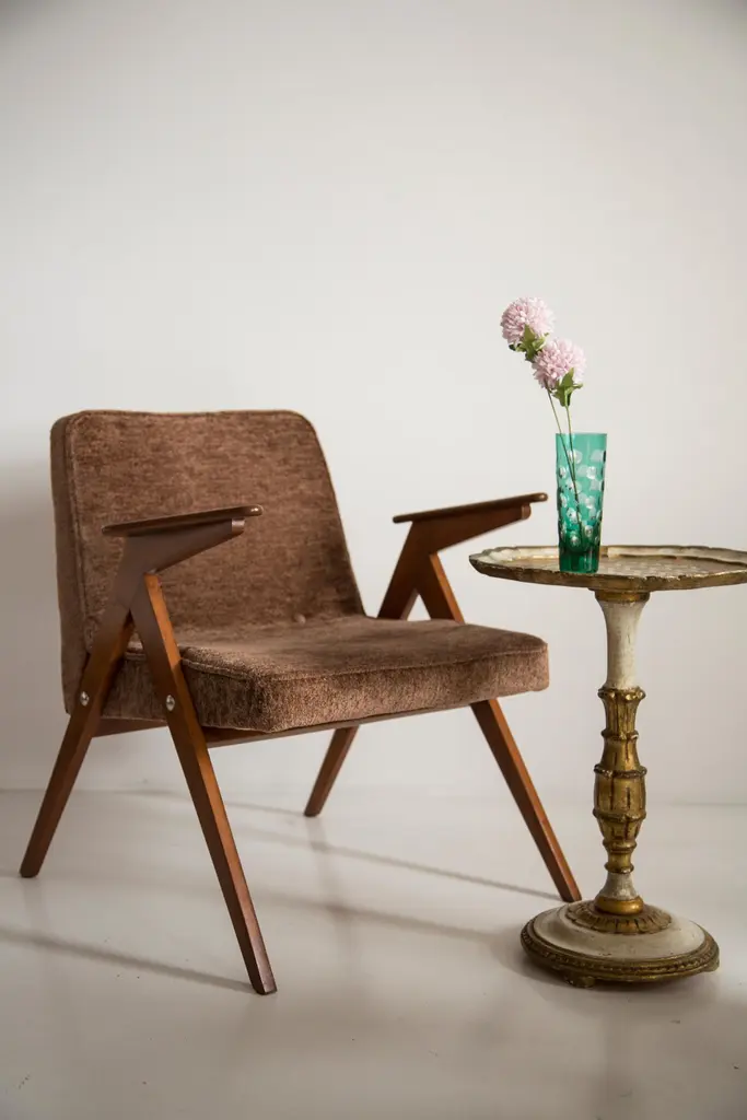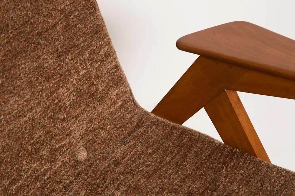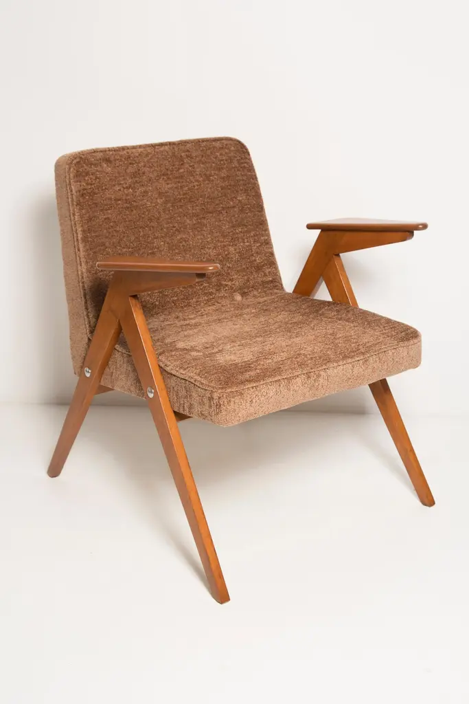 Set Of Two Midcentury Brown Bunny Armchairs, By Jozef Chierowski, Poland, 1960s