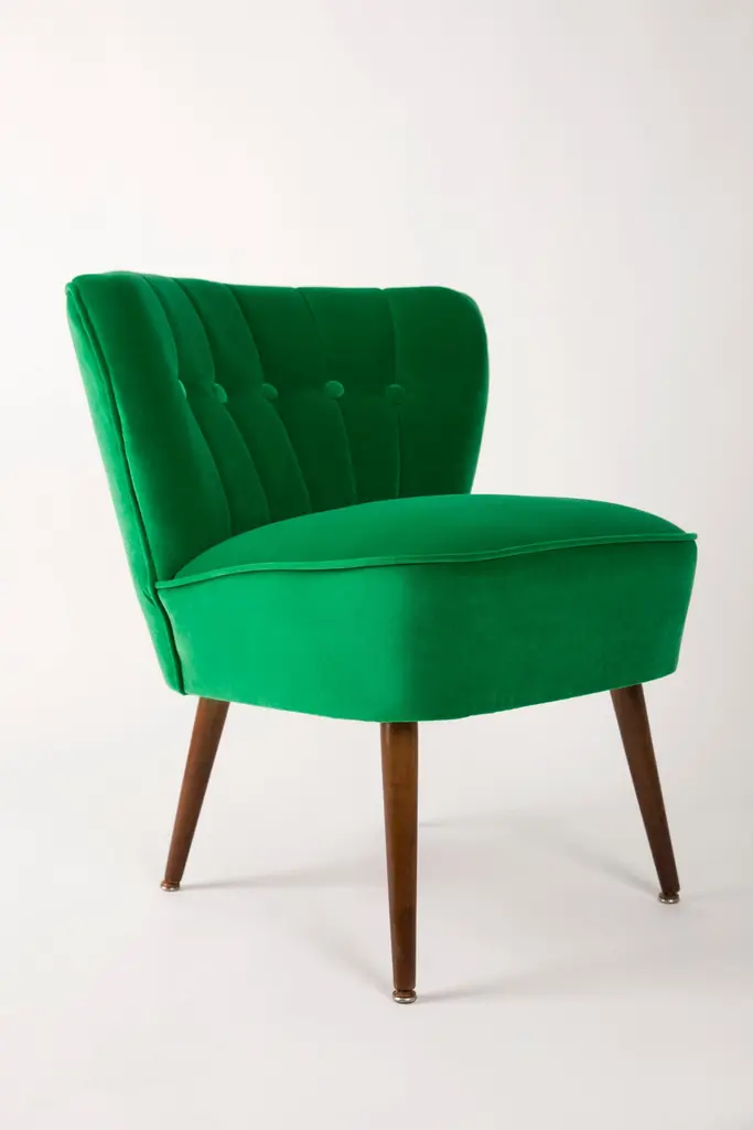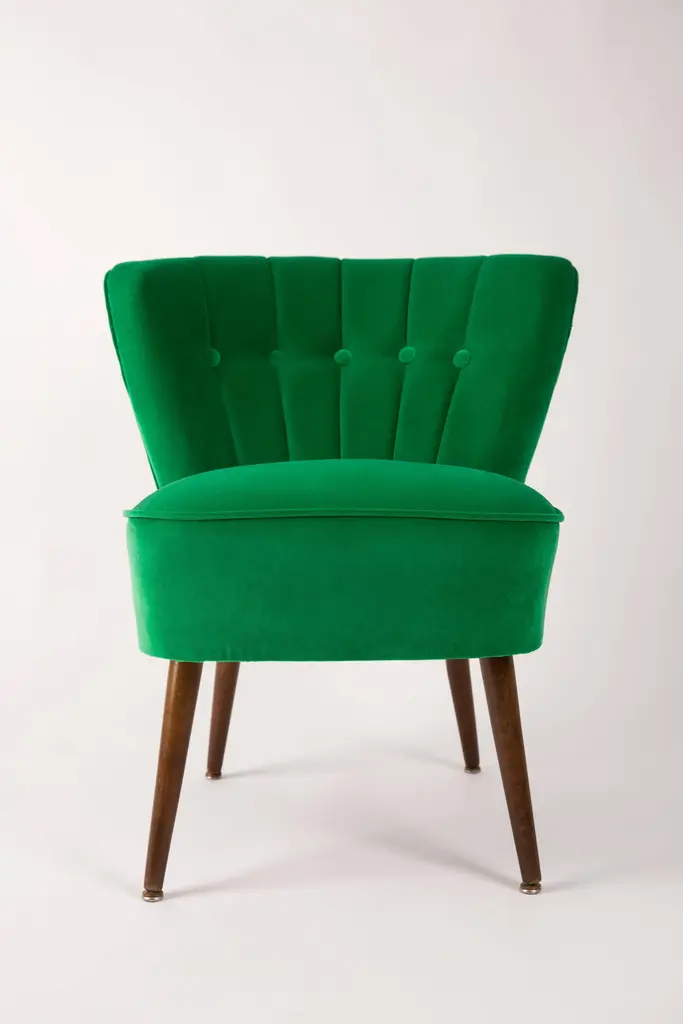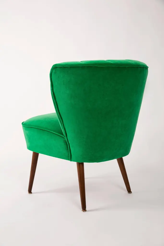 Springy, very comfortable and stabile polish club seat. Produced in the 1960s at the Karl Lindner factory in Germany. The whole armchairs is covered with high-quality green velour (color number 39). The armchairs are after a complete upholstery and carpentry renovation. We can prepare this set also in another wood and velvet color.