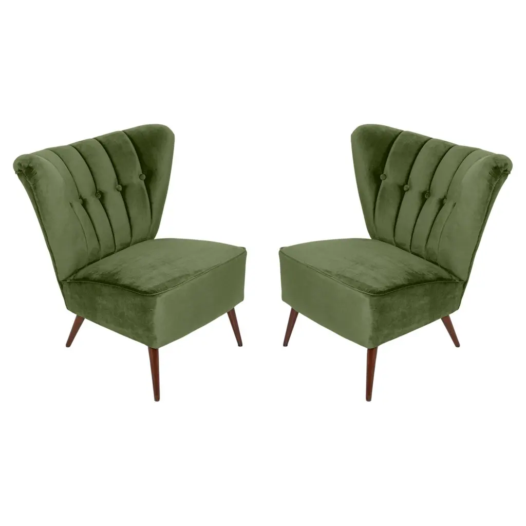 Set Of Two Midcentury Green Velvet Club Armchairs, Germany, 1960s