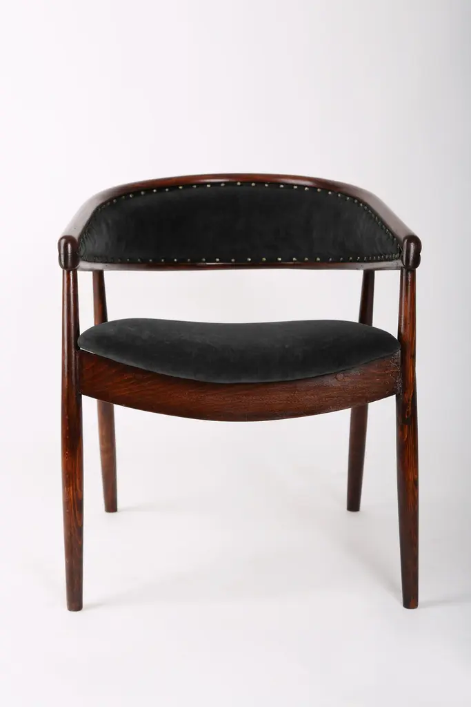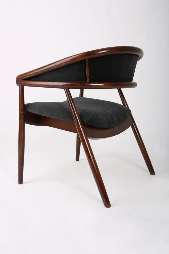 A super-comfortable armchairs, made in the 1960s in Poland. The armchairs made of bentwood was produced in Radomsko. Very comfortable and beautiful. Perfect for Minimalist interiors. The armchairs are after carpentry and upholstery renovation. The fabric used is a black velvet.