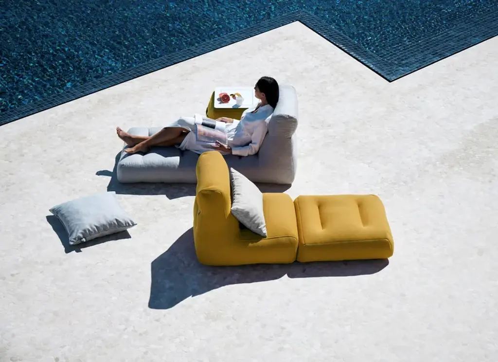 This has been specifically thought out as chaise longue for open spaces outdoors, but it also adapts itself to closed spaces. It’s the protagonist wherever it is placed, one of our star products in the catalogue. Again, it is its versatility that makes this piece so unique, as it can be combined in different ways to create chill-out areas which will make everyone stare! The comfort of SIT POOL is only comparable to its attractive minimalist design, which steals all eyes.The filling will depend on the type of fabric as well as the use:- G1/21 fabrics : AGORA suitable for indoor, outdoor and pools also- G3/21 - fabrics : MEZZO y NATTE - suitable for indoor and outdoor / NOT for POOLS- G4/21 - fabrics : MAJESTIC - suitable for indoor and outdoor / NOT for POOLS