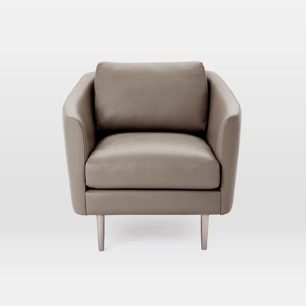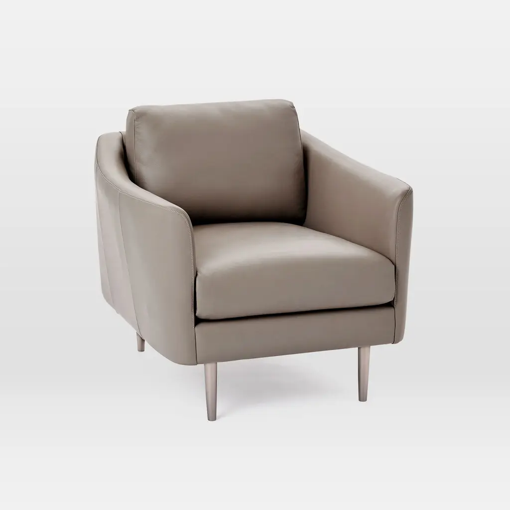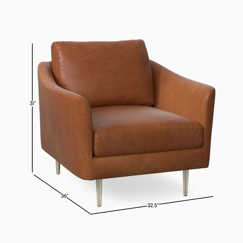 With gracefully bowed arms wrapped in your choice of genuine or vegan leather, our Sloane Chair is sleek but soft, elegant yet surprisingly comfortable.