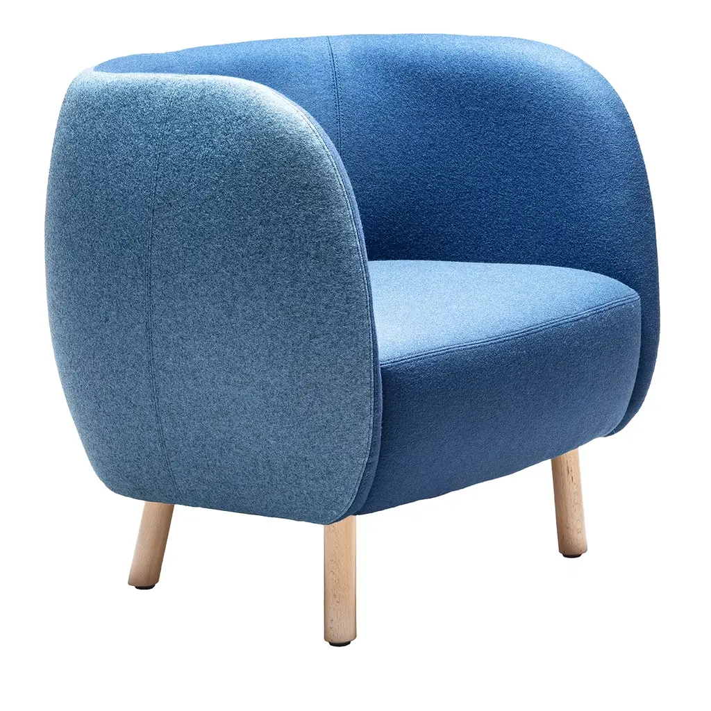 Whether it is placed in a contemporary style lounge room or in a waiting room, the Sly armchair will be the undisputed highlight of the room. The enveloping lines and polypropylene cords, in various colors, on the back, available in high or low version, are sure to attract attention. The upholstery for the padded body of the sofa comes in a wide range of choices, as do the finishes for the legs in beechwood.