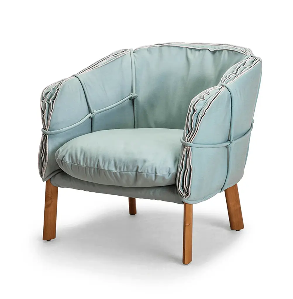 Whether it is placed in a contemporary style lounge room or in a waiting room, the Sly armchair will be the undisputed highlight of the room. The enveloping lines and polypropylene cords, in various colors, on the back, available in high or low version, are sure to attract attention. The upholstery for the padded body of the sofa comes in a wide range of choices, as do the finishes for the legs in beech wood.