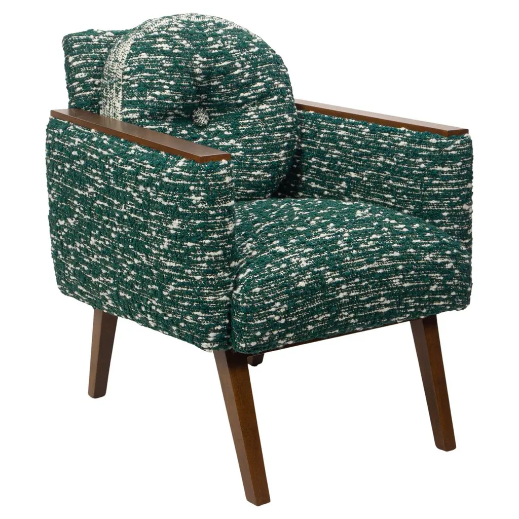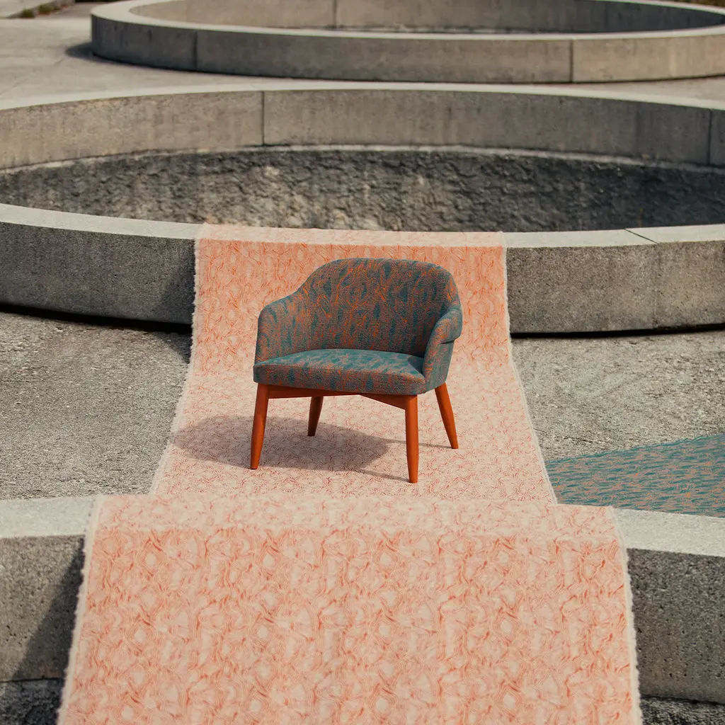 A clever combination of vibrant colors and sophisticated tailored details lend this armchair its distinctive eclectic appeal, making it ideal to be the focal point of neutral-toned modern homes. The solid beech structure lacquered in vibrant orange matches the fabric upholstery (Greto 2634) with an intricate teal-hued pattern. The seat is 46cm high.