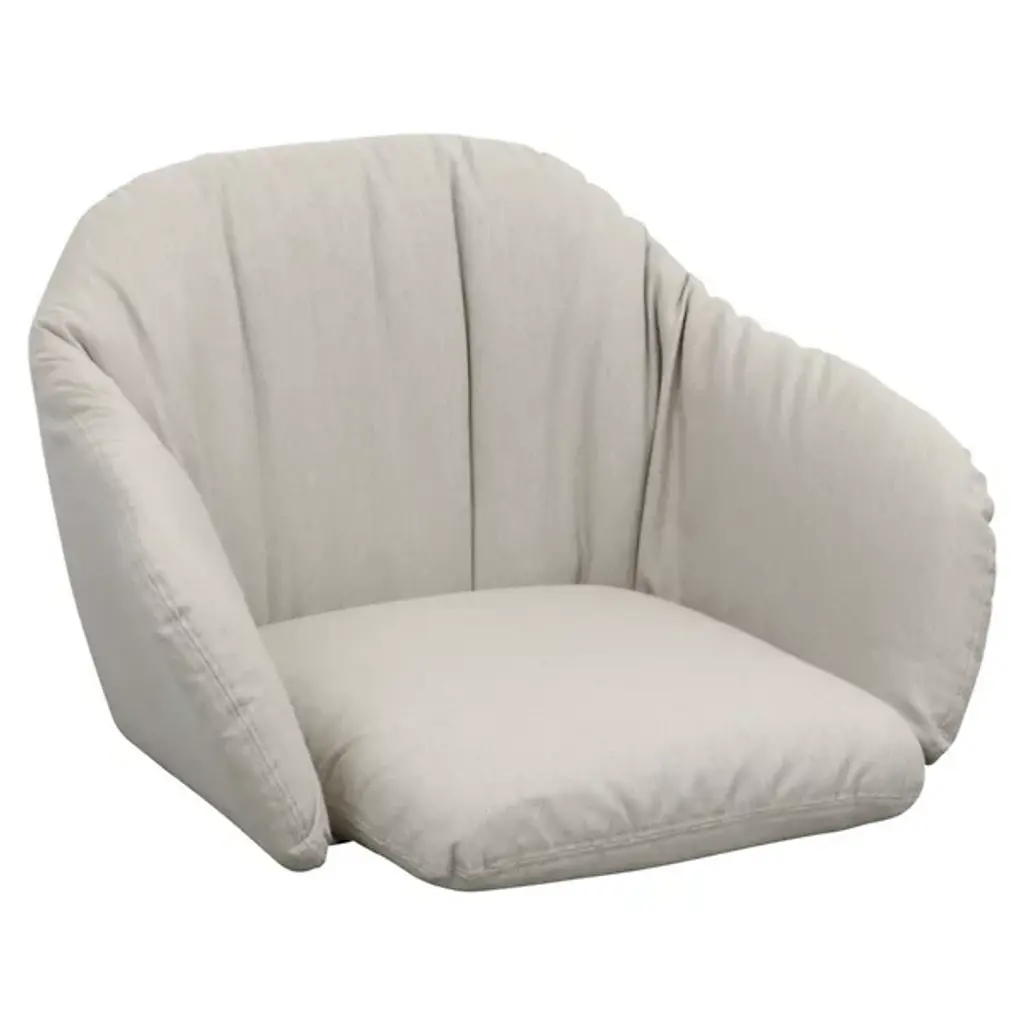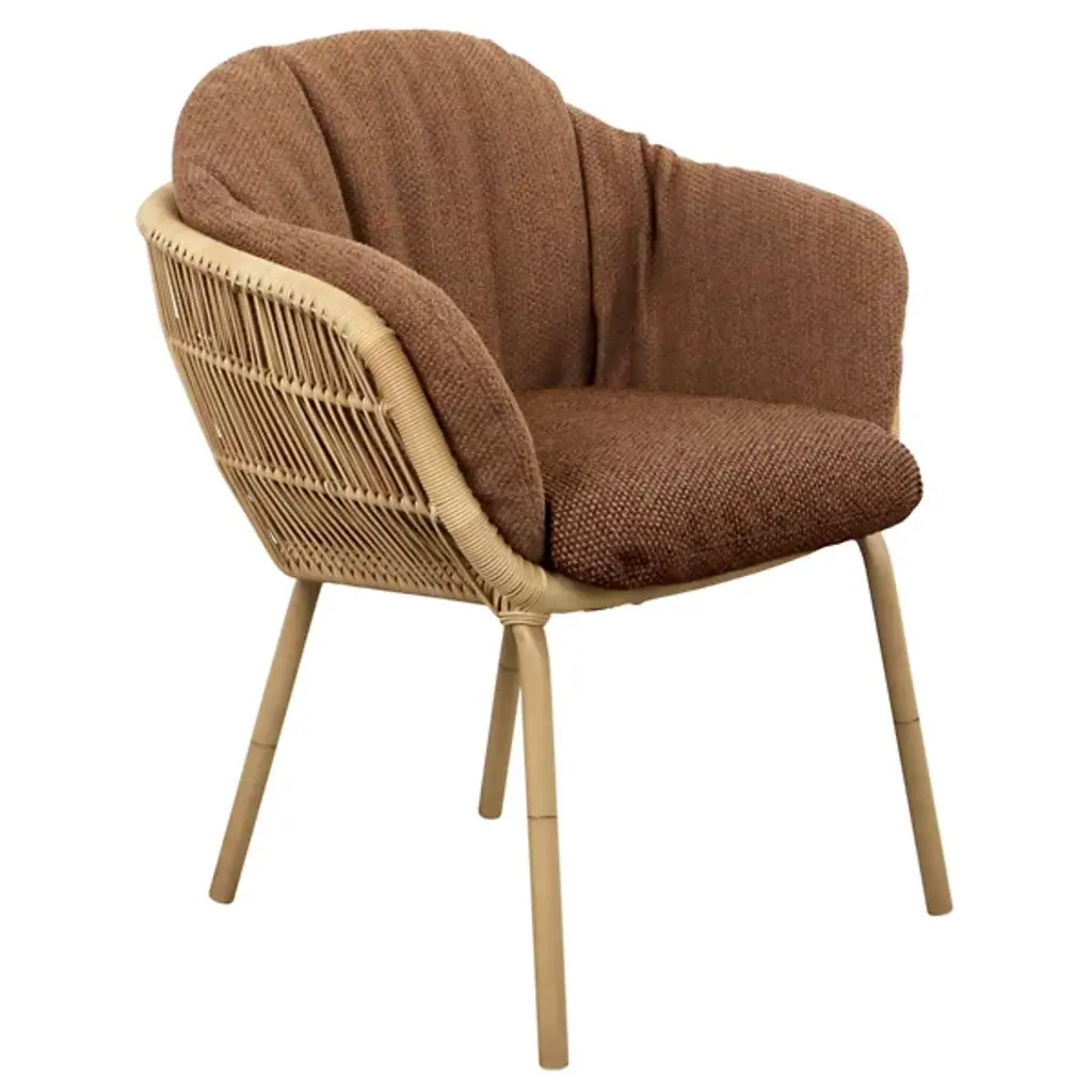 The Stay Outdoor Stackable Armchair with Cushion from Cane-line offers practical, comfortable appeal to outside spaces. Its shell-style seat surrounds tubular aluminum elements with a Cane-line weave, showing off an intricate texture that provides an element of traditional craftsmanship. The seat is stackable, with wicker wrapping and a metal understructure that supports a cushioned insert with soft upholstery, offering an extra layer of comfort. The open silhouette creates a relaxing character, combining the handwoven weave with the inset upholstery for ‘nest-like’ comfort that can endure the elements, drying out quickly and easily.