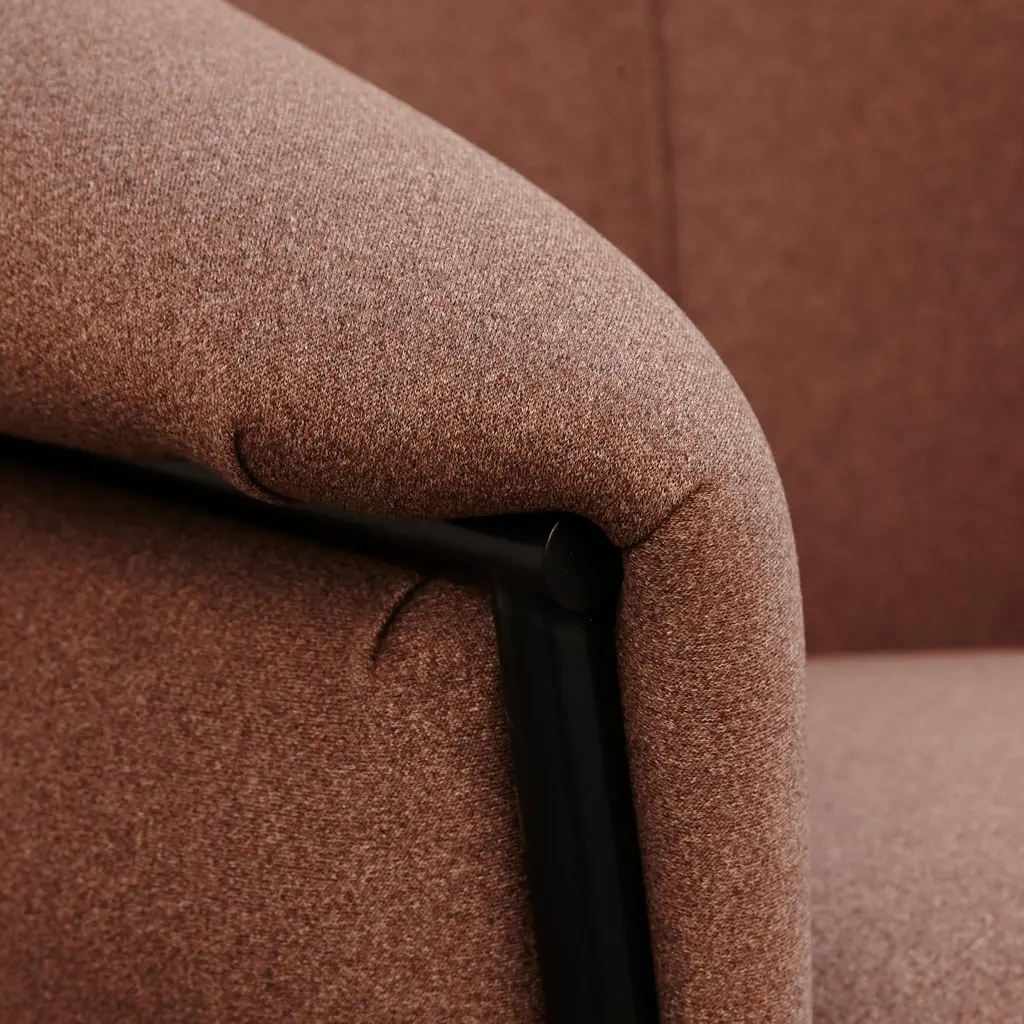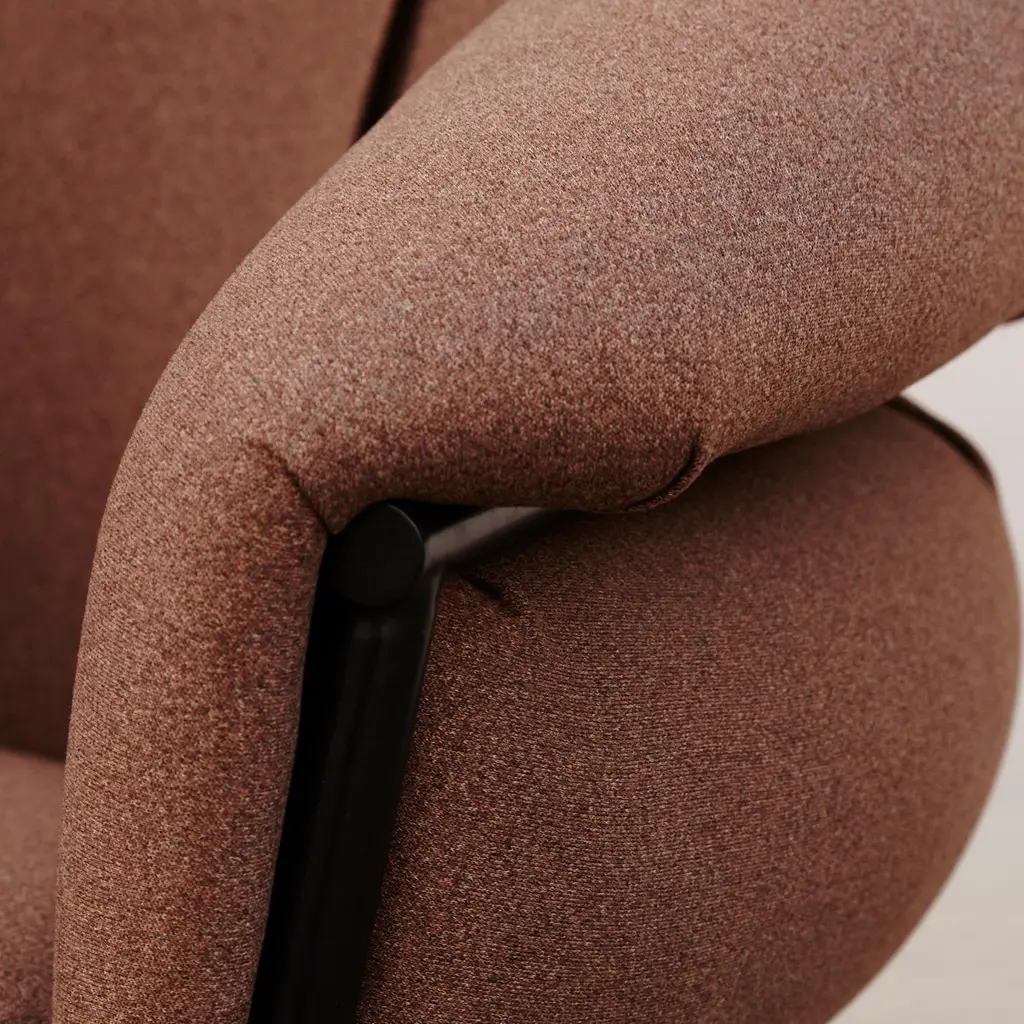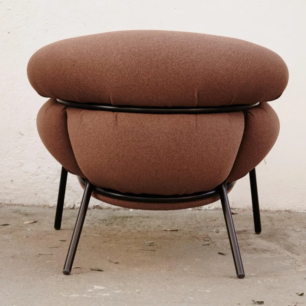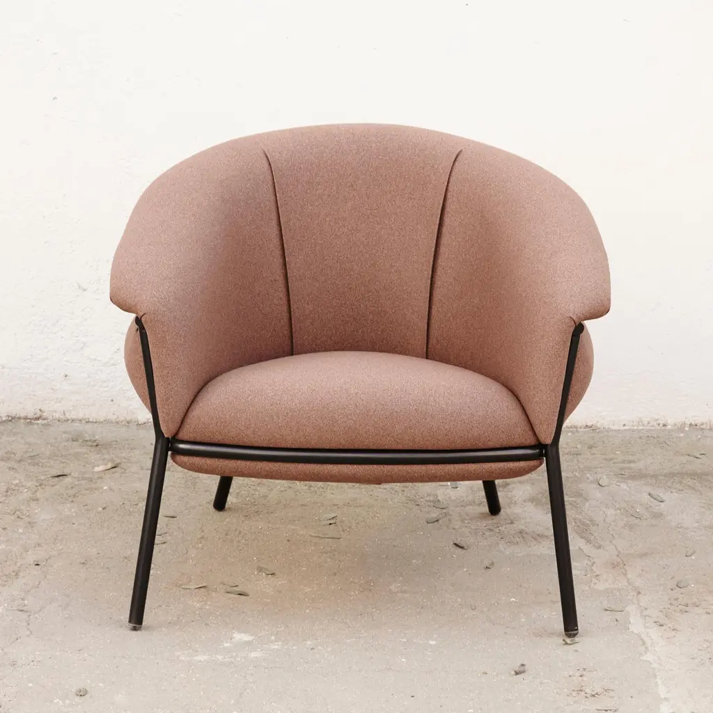 Armchair designed by Stephen Bruks manufactured by BD Barcelona.An iron tubular (25 mm) structured armchair. Seat and backrest upholstered in fabric.The fabric upholstery oozes over the bare iron structure to contrast with the most luxurious touch of the fabric.