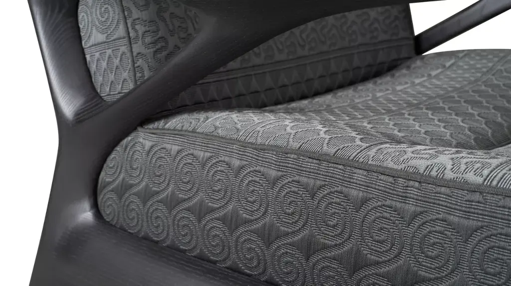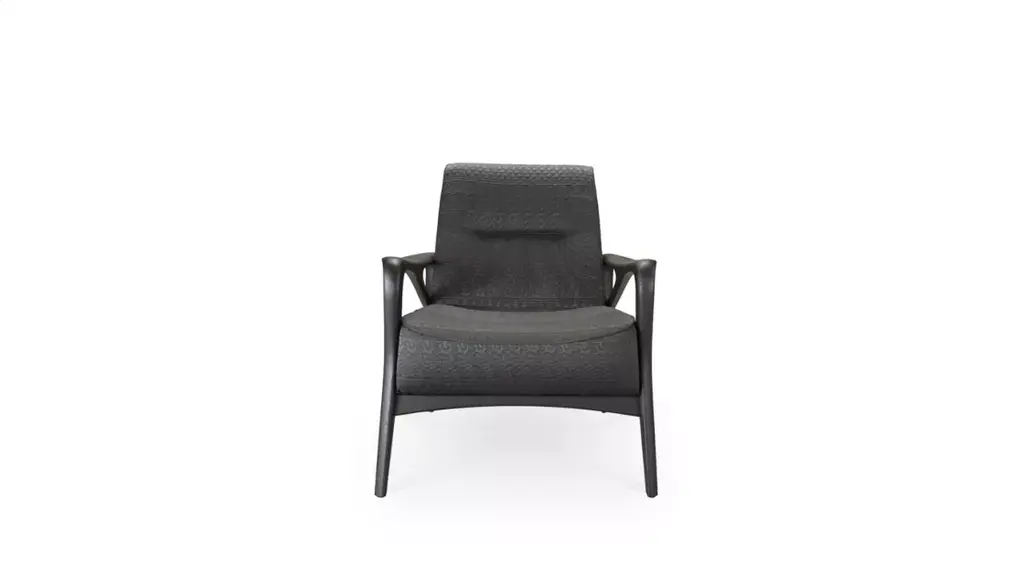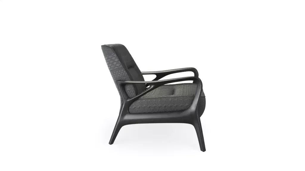The Fauteuil Strophe has all the hallmarks of a treasured classic. Remarkable for the finesse and singular design of its burnt-wood frame with an almost black finish. The precisely sculpted and polished armrests offer voluptuous support. Dressed in a fabric from Jean Paul Gaultier's latest collection, this club chair takes sophisticated modernity to a whole new level.