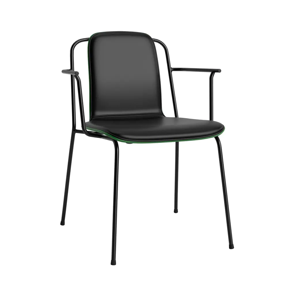 Designer Simon Legald's multipurpose Studio seating adds a front-upholstered version that plays on the graphic lines of the steel frame and the naturally soft silhouette of the padding. It also provides an element of customization, with a host of premium fabric and naturally finished leather options to choose from. An appealing choice for restaurants and educational facilities with flex-use areas, the steel frame makes it easy to grab hold of and move it around.