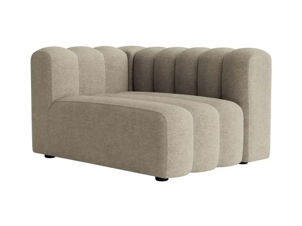 A tribute to a timeless era of the 70s and its expressive aesthetics. Featuring a versatile but simple system of modules, appearing in limitless options to form numerous settings, shapes and styles to adhere to all types of environments, whether for a small living setting or spacious public site, Studio collection is defined by its bold fluted upholstery characteristics inspired by late 70s sofa styles, refined in a contemporary way - giving the series a unique identity. Each module of Studio articulates soft and welcoming lines ideally suited for living, socialising and relaxing where one can feel totally at ease. The armrest cushion is loose and can be moved and repositioned across the series, balancing the fluted upholstery. A plywood structure with elastic belts & foam. 360-degree finish, each module can be a stand-alone. Modules can be reversed to create a two-sided sofa. Click-Link system connects modules. Soft foam mix for ultimate comfort. Available in a wide variety of high-quality eco-fabrics or leather from Sørensen Leather. Made in Italy.